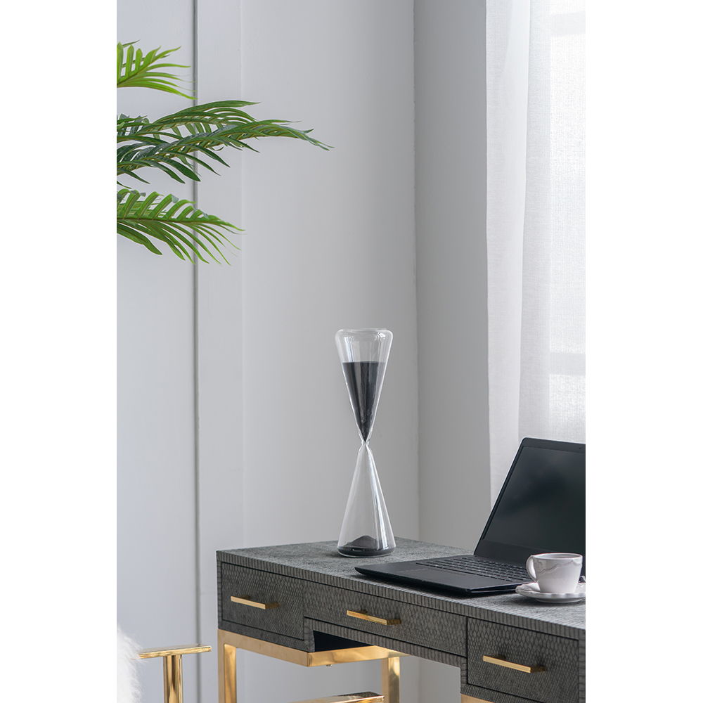 • Elegant Design: Eye-catching hourglass with black sand resting on a sleek crystal stand.