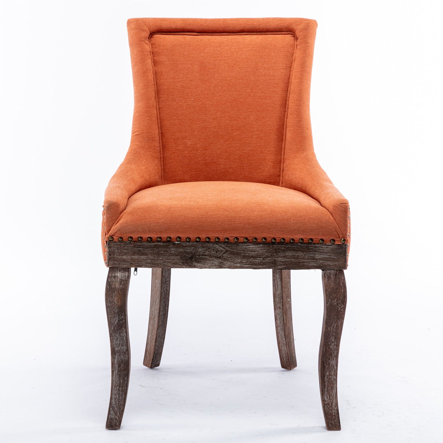 Ultra Side Dining Chair,Thickened Fabric Chairs With Neutrally Toned Solid Wood Legs, Bronze Nail Head (Set of 2) - Orange