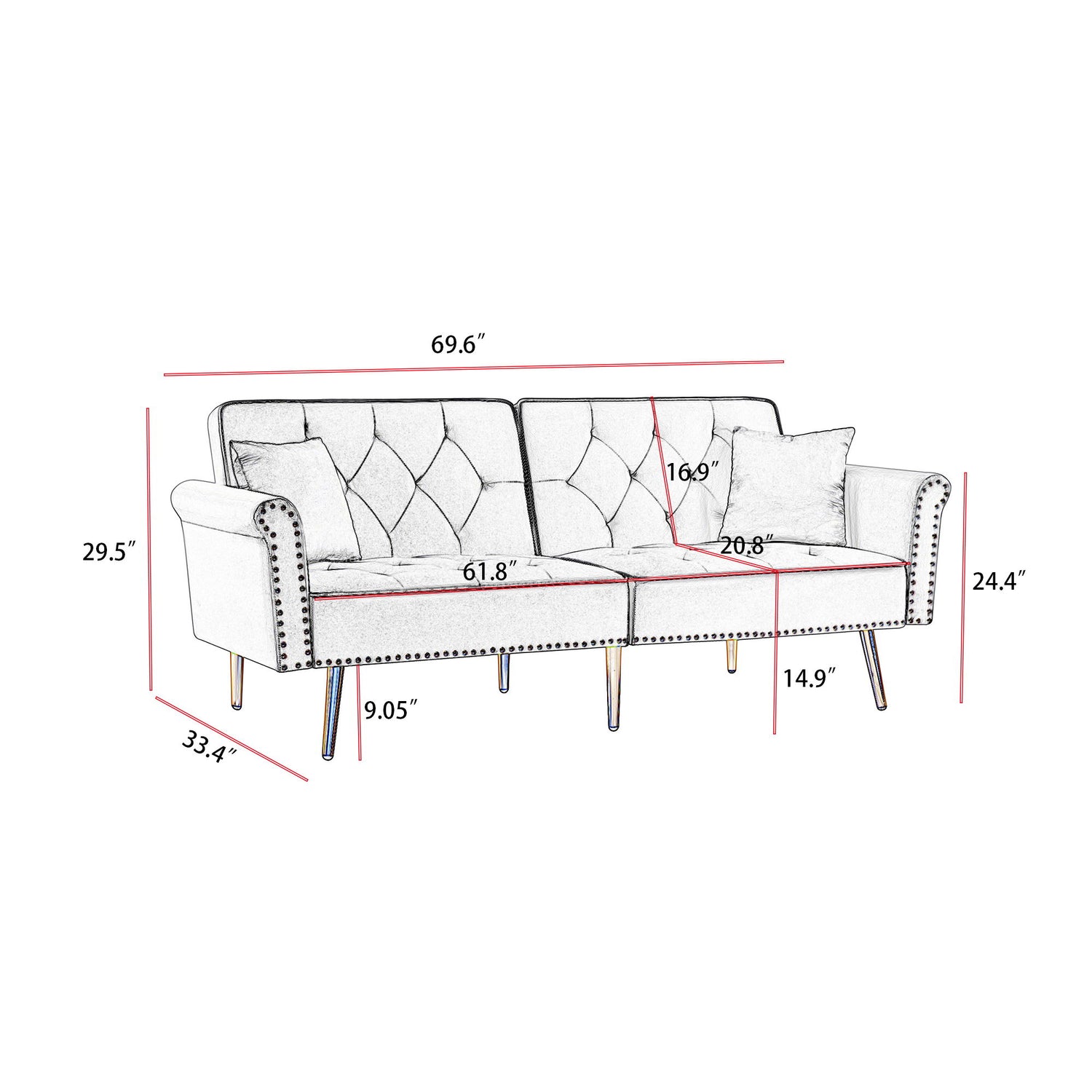 • Contemporary Design: Nailhead trim and tufted cushion design for warmth and charm. Elegant line design fits any decor theme.