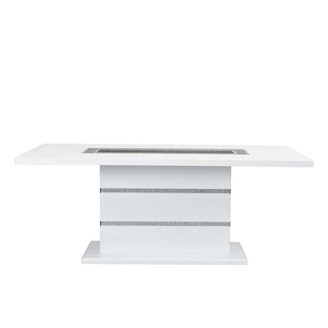 Elizaveta - Dining Table With Pedestal Base - Faux Crystal Diamonds & White High Gloss