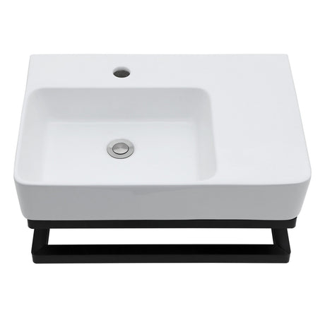 Wall Mounted Rectangular Bathroom Sink With Towel Bar And Faucet Hole - White