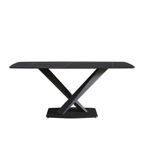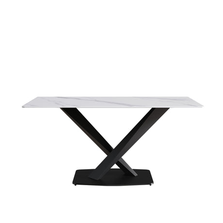 63" Modern Artificial Stone Straight Edge Metal X-Leg Dining Table, 6 People - White / Black