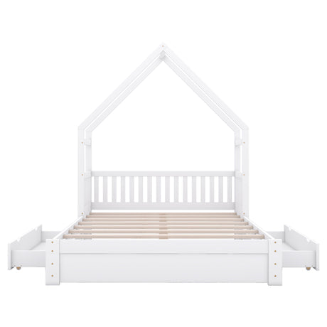 House Style Platform Bed With Guardrail And 2 Drawers