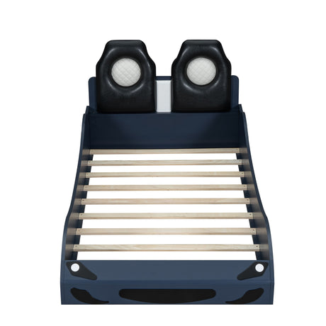 Race Car Shaped Platform Bed With LED And Upholstered Backrest In