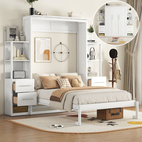 Murphy Wall Bed With LED Lights, Shelves And Drawers