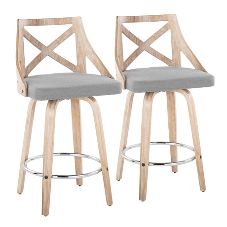 Charlotte - Farmhouse Fixed Height Counter Stool With Swivel (Set of 2) - White Washed / Cream