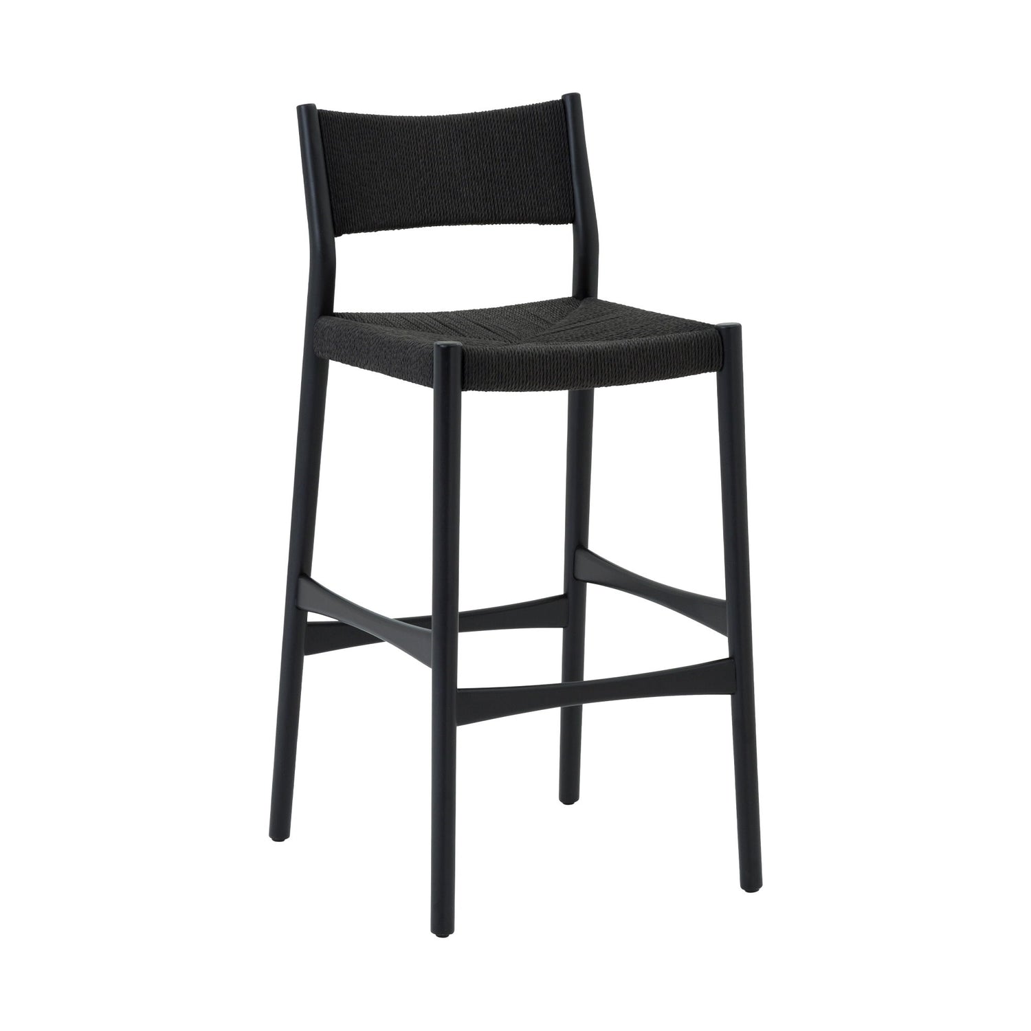 Erie - Woven Paper Cord And Wood Bar Stool - Black