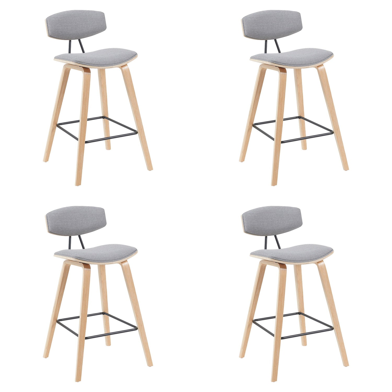 Fox - Modern Swivel Bar Height Stool (Set of 4) - Gray Upholstered Seat And Patterned Oak Wood Frame