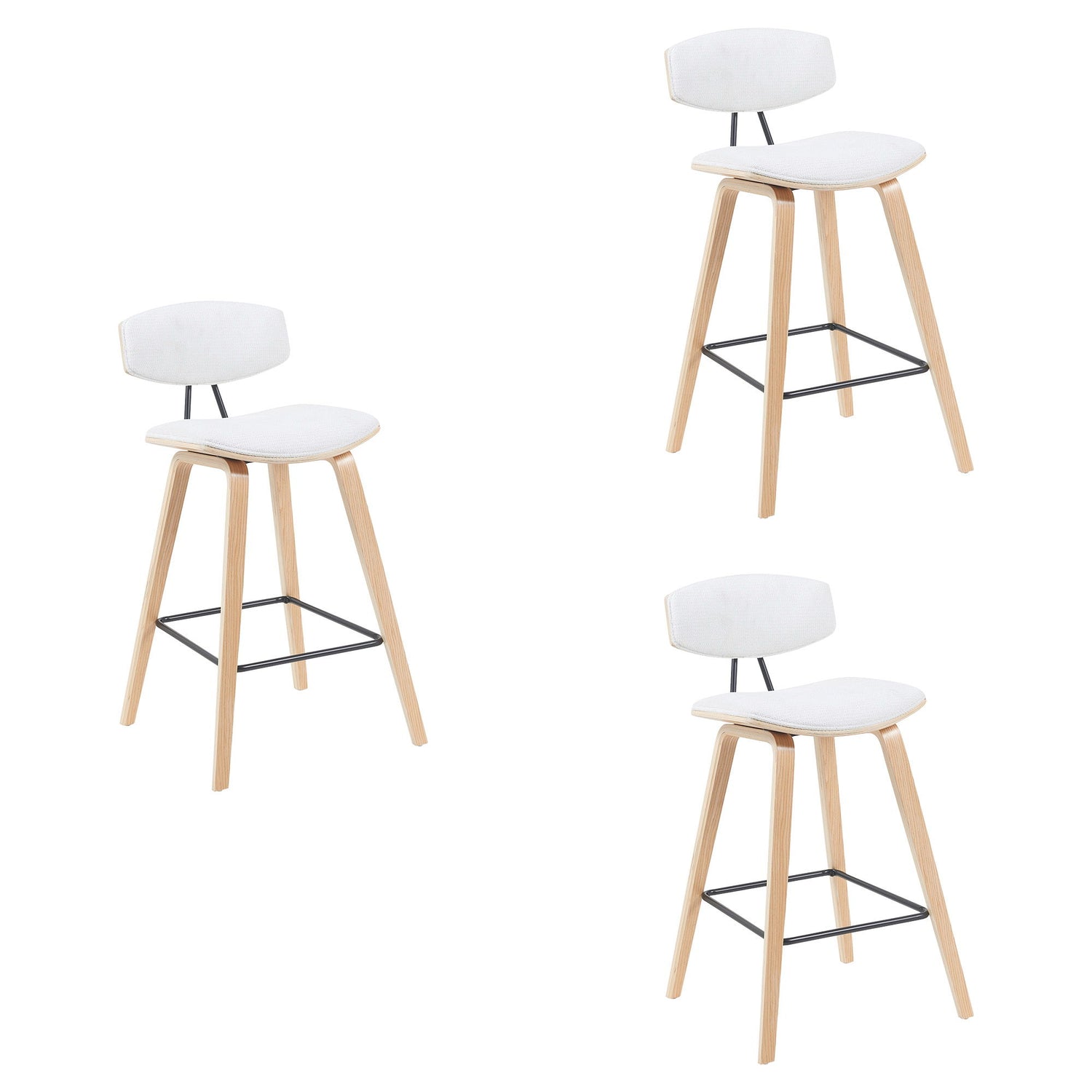 Fox - Modern Swivel Bar Height Stool (Set of 3) - White Upholstered Seat And Patterned Oak Wood Frame