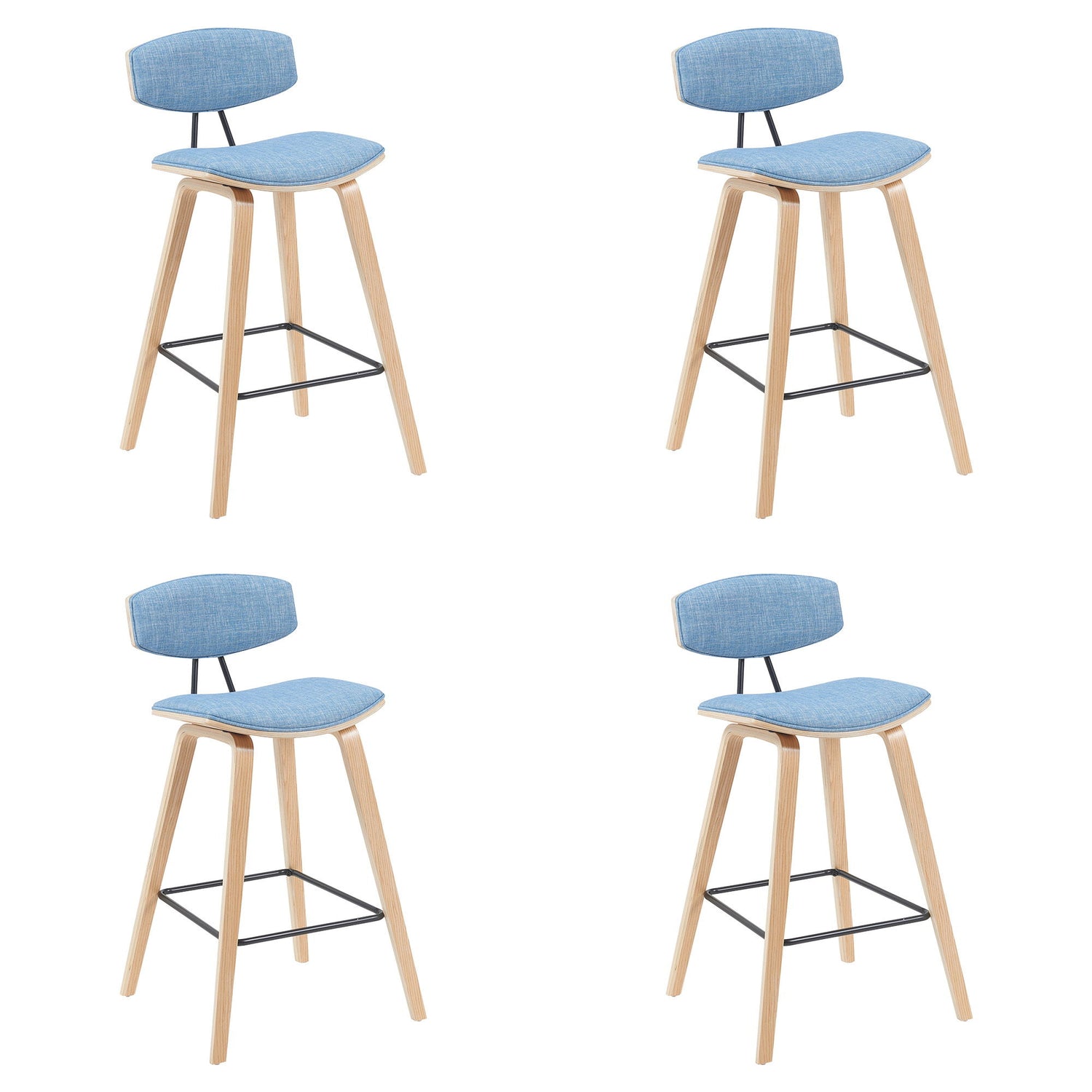 Fox - Modern Swivel Bar Height Stool (Set of 4) - Light Blue Upholstered Seat And Patterned Oak Wood Frame