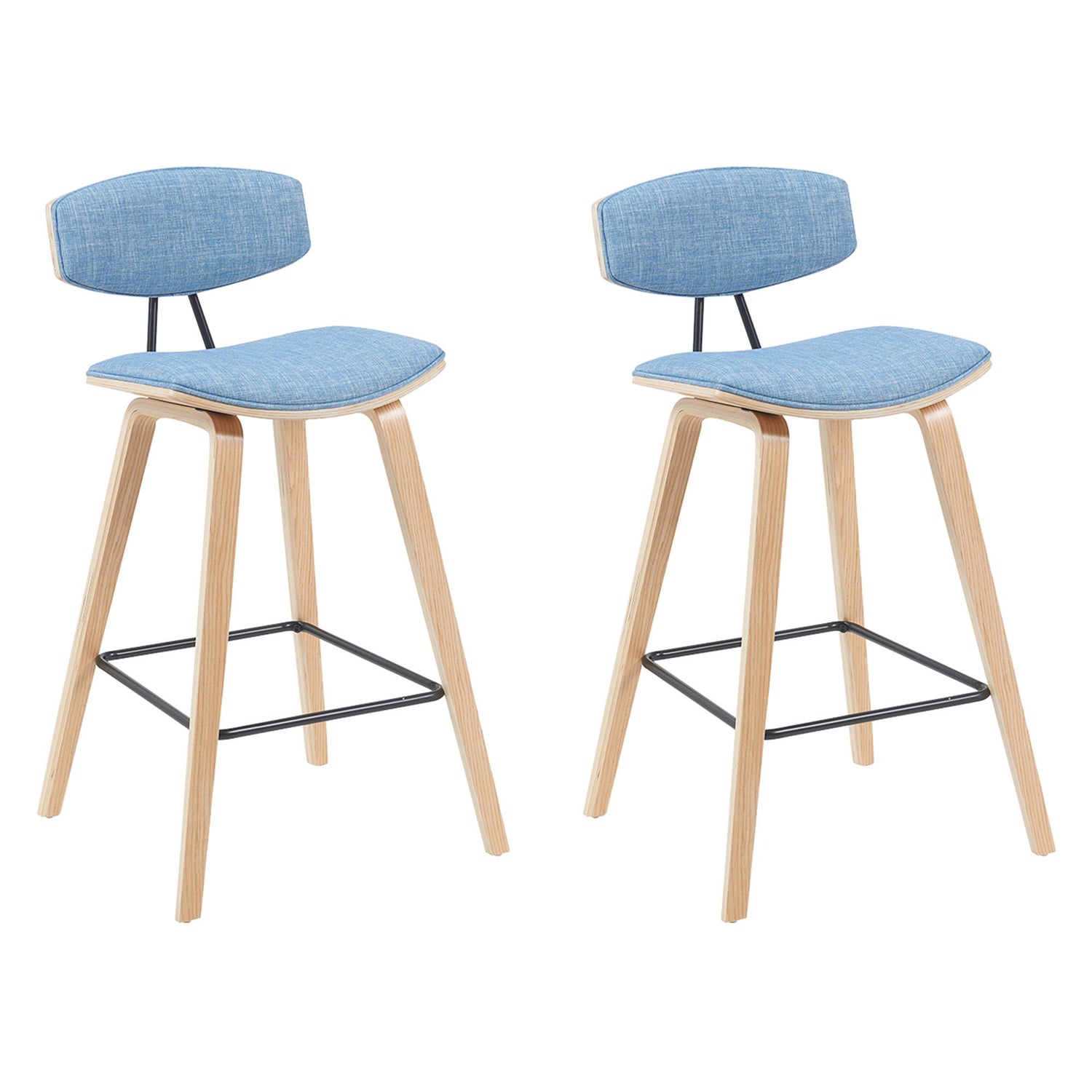 Fox - Modern Swivel Bar Height Stool (Set of 2) - Light Blue Upholstered Seat And Patterned Oak Wood Frame