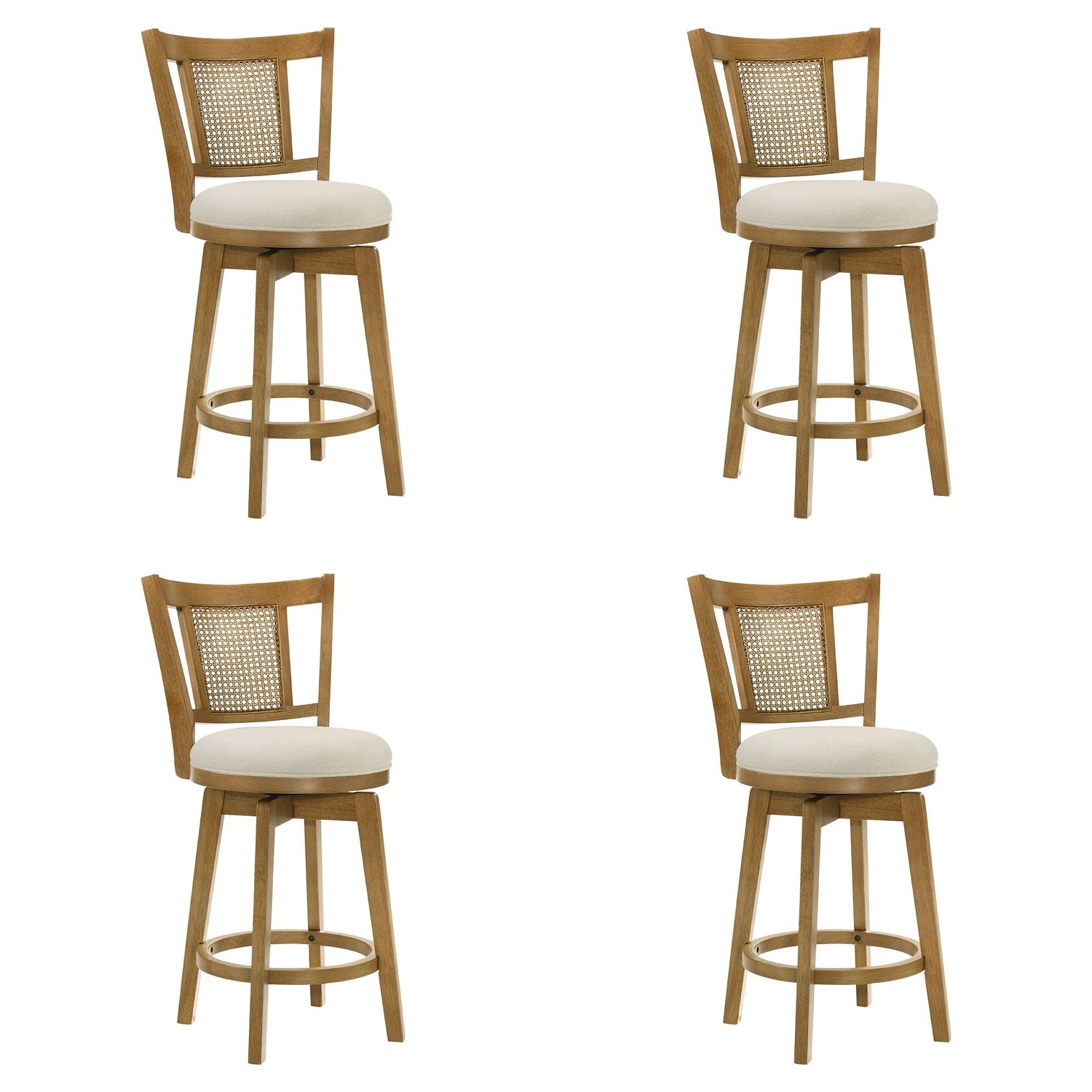 Isla - 26" Amber Glow Counter Height Rubberwood Swivel Barstool (Set of 4) - Ivory Fabric Seat