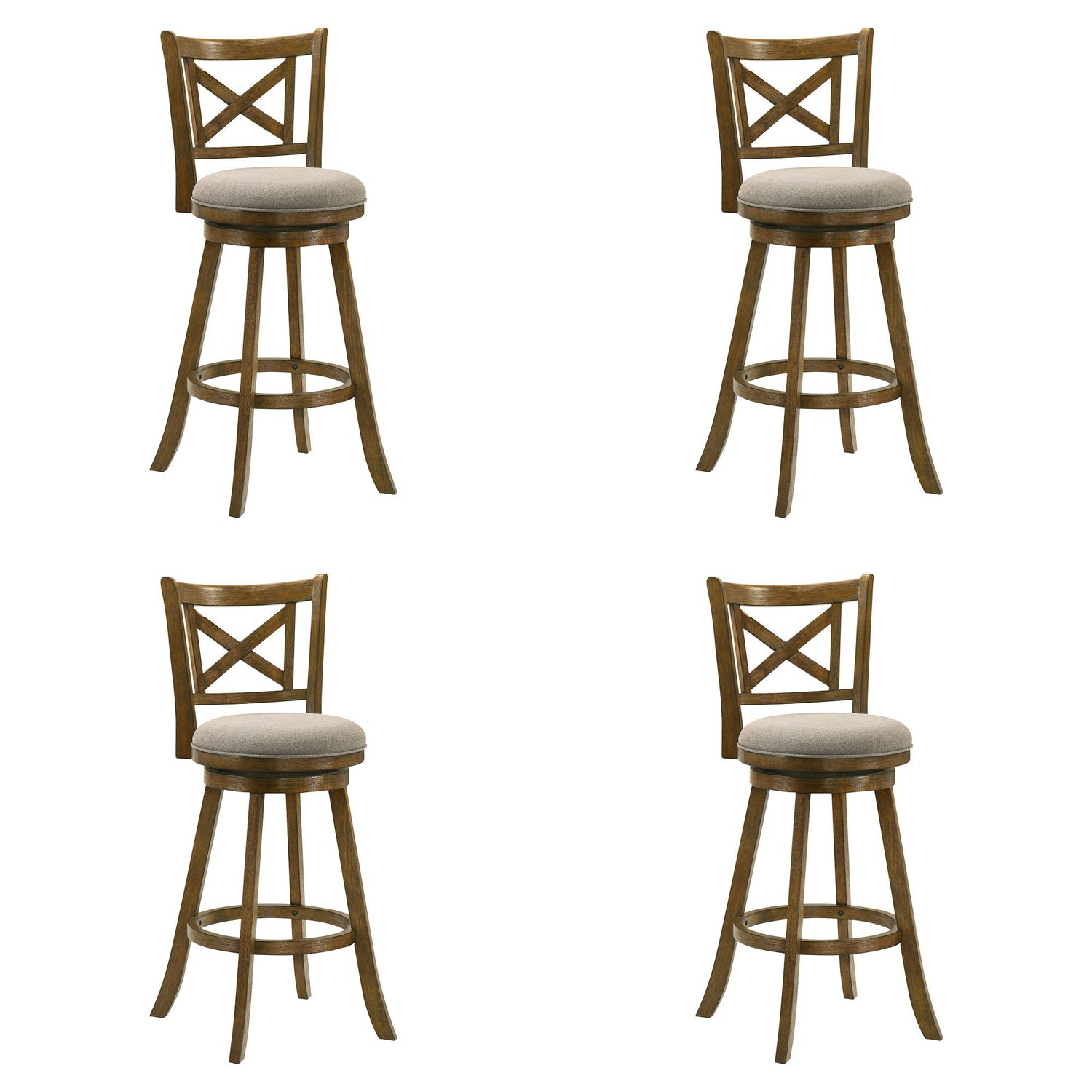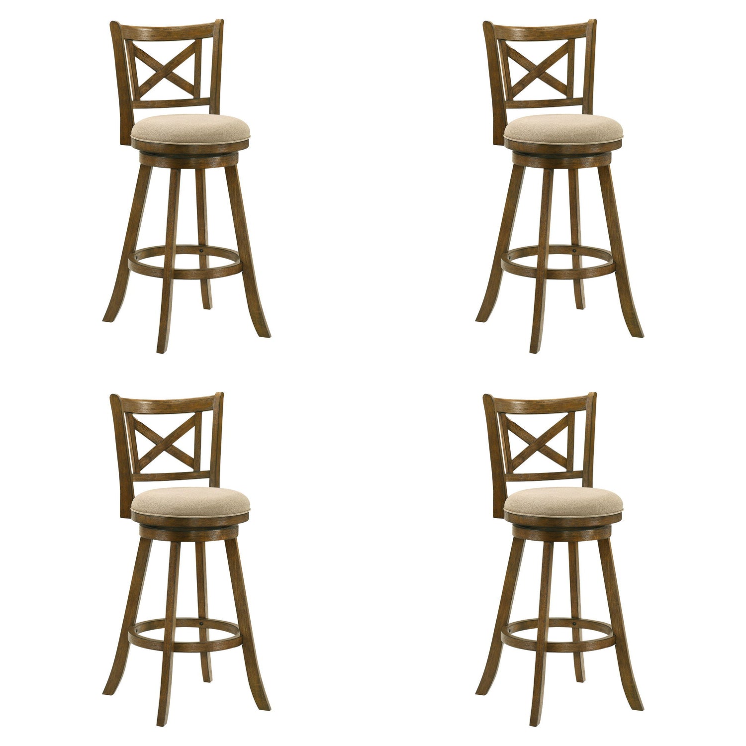 Kodi - Modern Farmhouse Swivel Wood Bar Height Kitchen Bar Stool (Set of 4) - Sepia Brown Finish With Light Scone Fabric Upholstered Seat