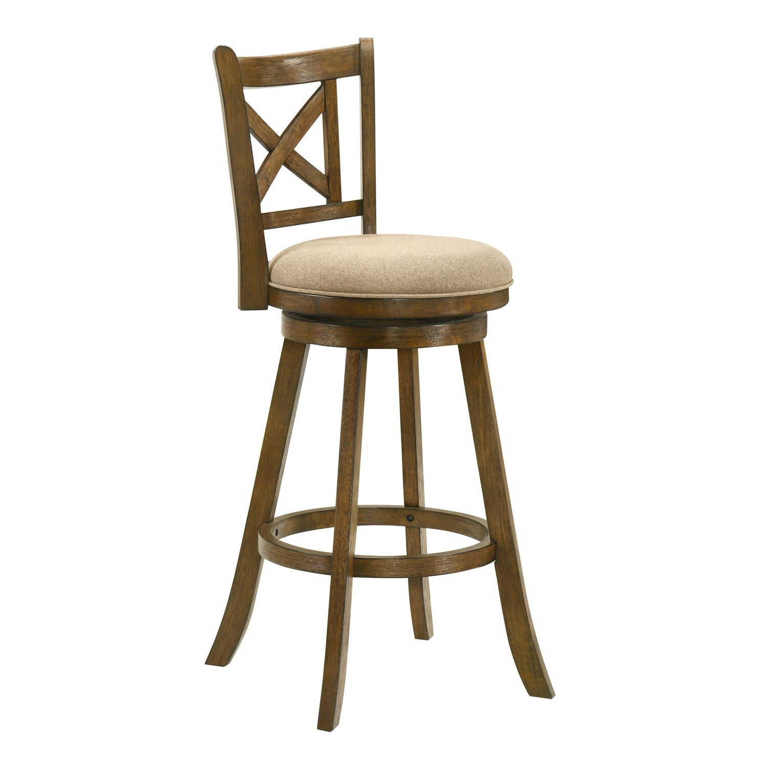 Kodi - Modern Farmhouse Swivel Wood Bar Height Kitchen Bar Stool - Sepia Brown Finish With Light Scone Fabric Upholstered Seat