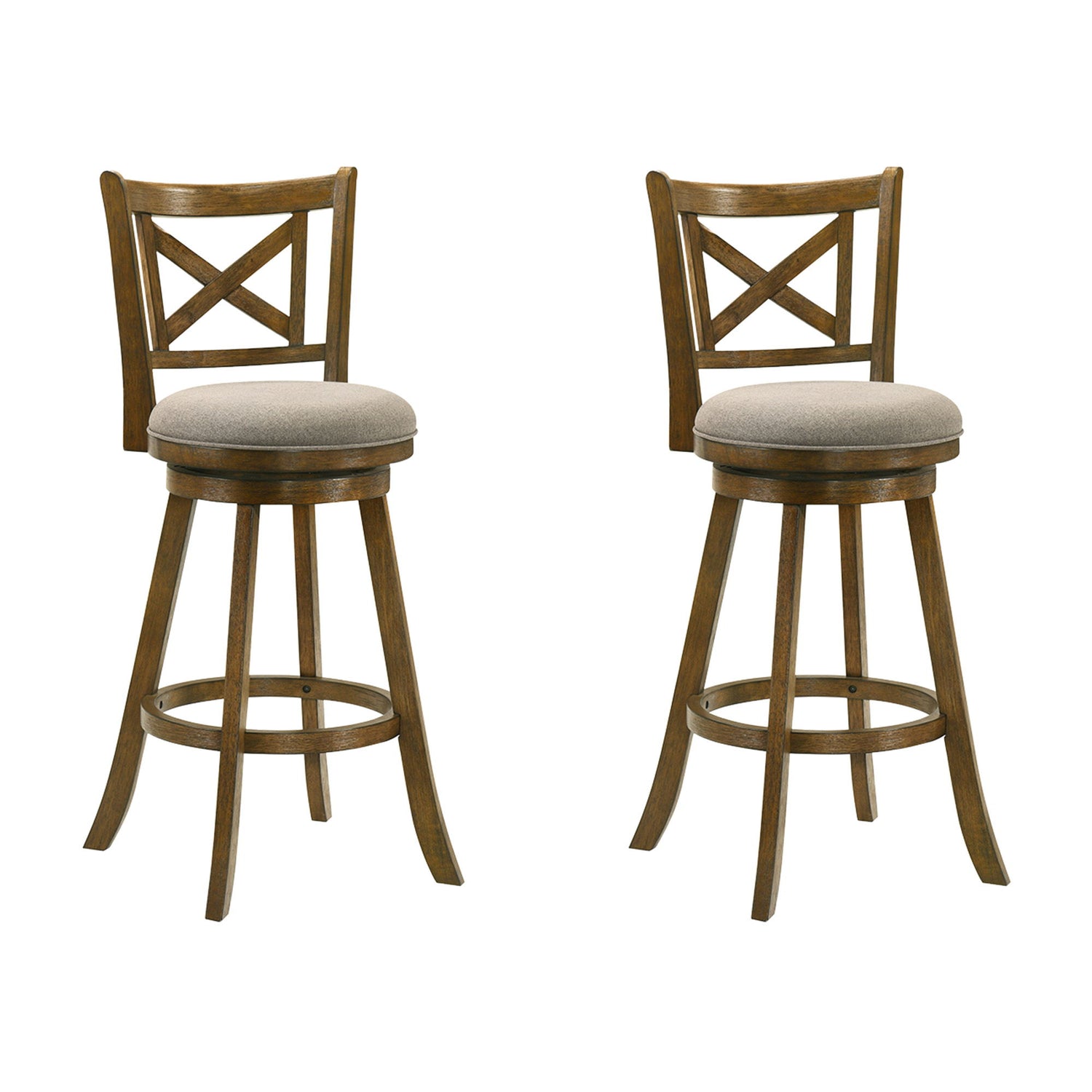 Kodi - Modern Farmhouse Swivel Wood Bar Height Kitchen Bar Stool (Set of 2) - Sepia Brown Finish With Gray Fabric Upholstered Seat