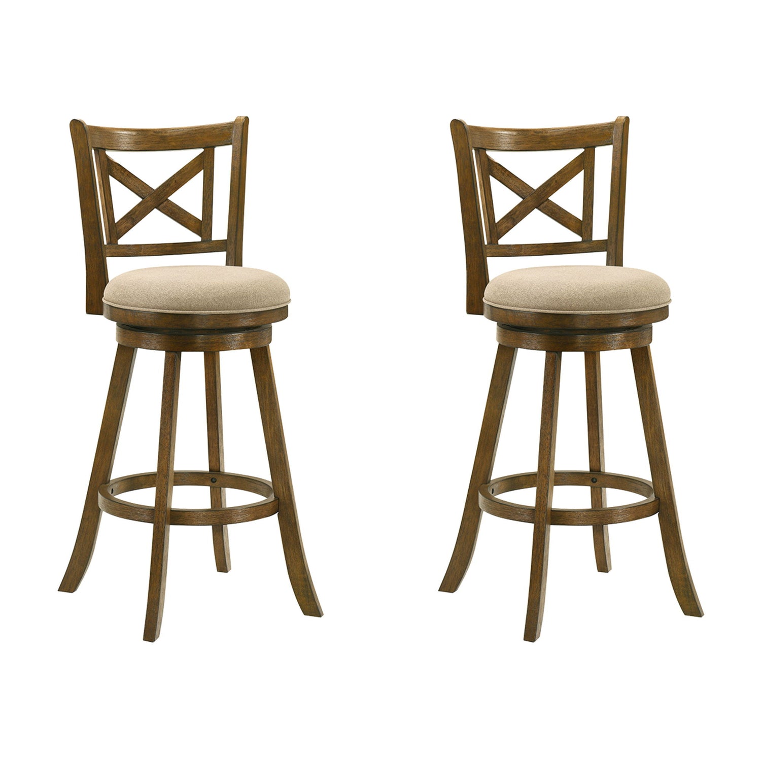 Kodi - Modern Farmhouse Swivel Wood Bar Height Kitchen Bar Stool (Set of 2) - Sepia Brown Finish With Light Scone Fabric Upholstered Seat