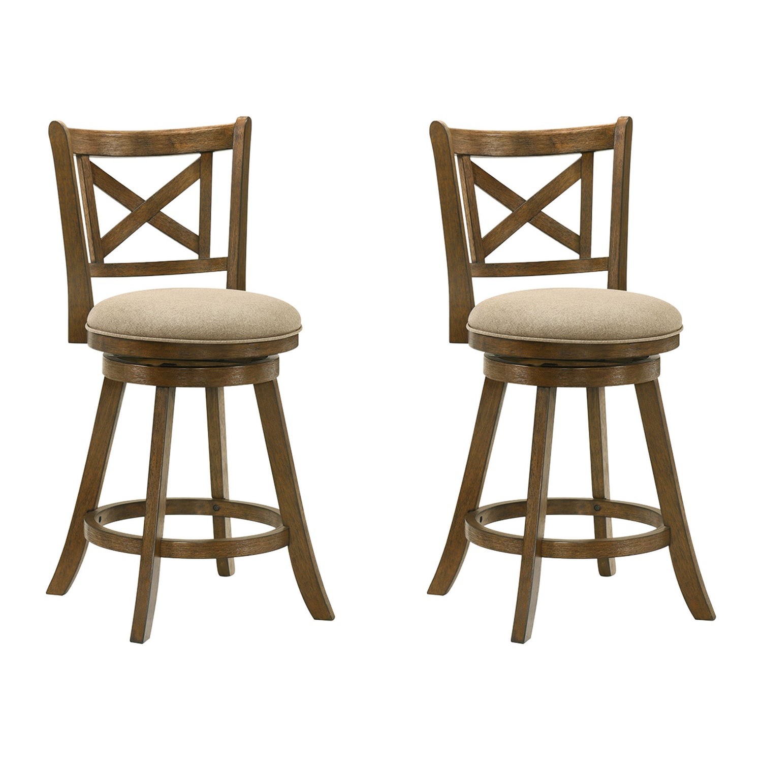 Kodi - Modern Farmhouse Swivel Wood Counter Height Kitchen Bar Stool (Set of 2) - Sepia Brown Finish With Light Scone Fabric Upholstered Seat