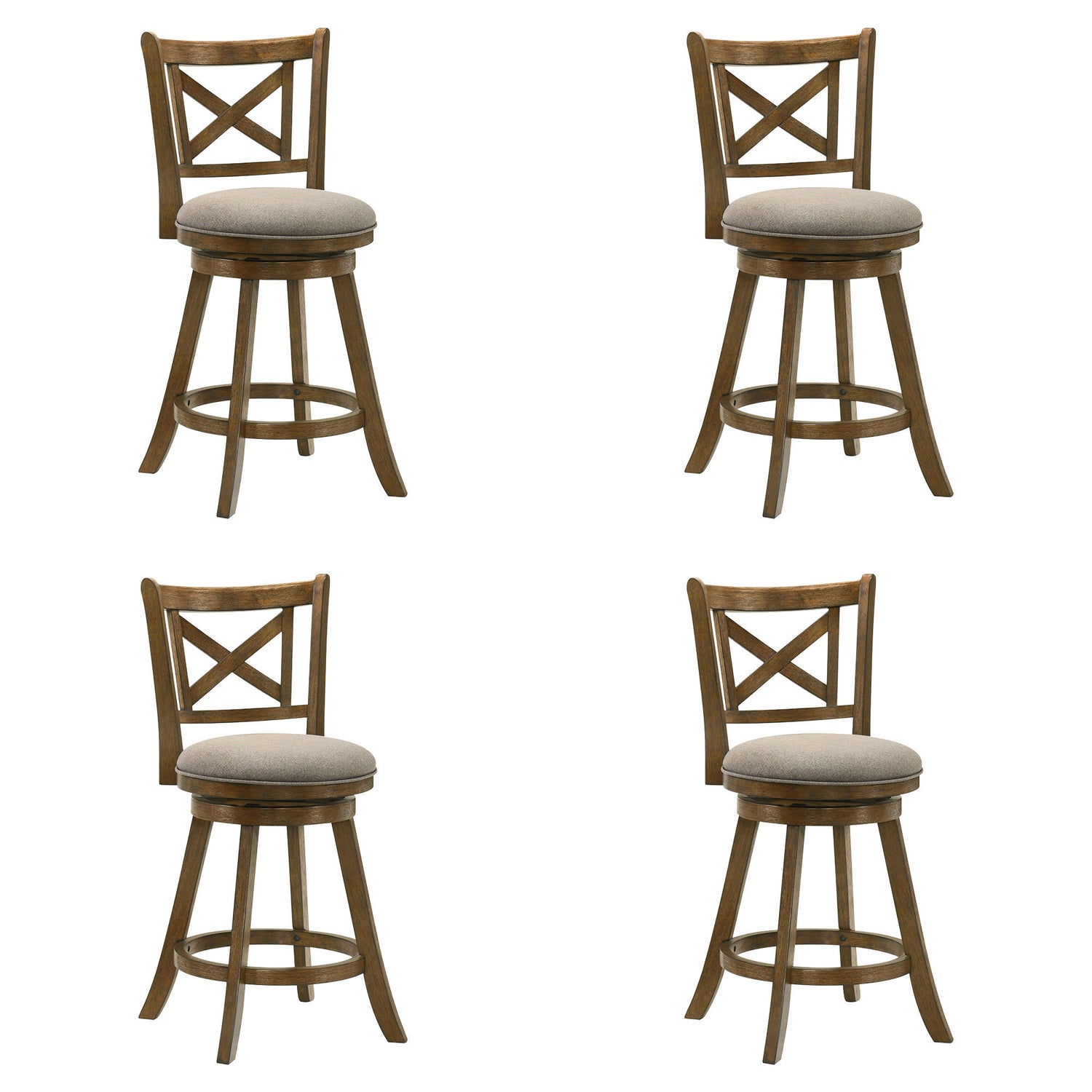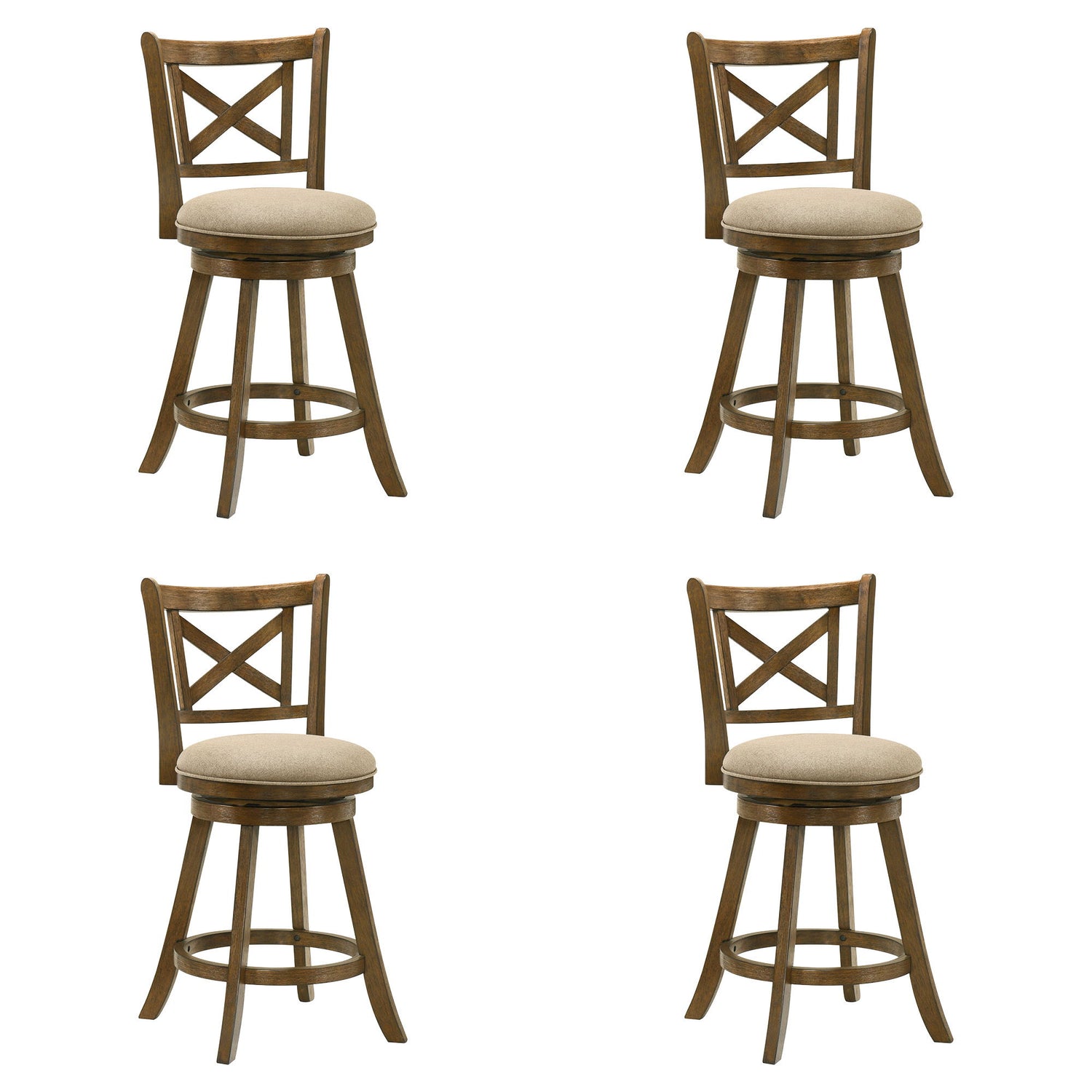 Kodi - Modern Farmhouse Swivel Wood Counter Height Kitchen Bar Stool (Set of 4) - Sepia Brown Finish With Light Scone Fabric Upholstered Seat