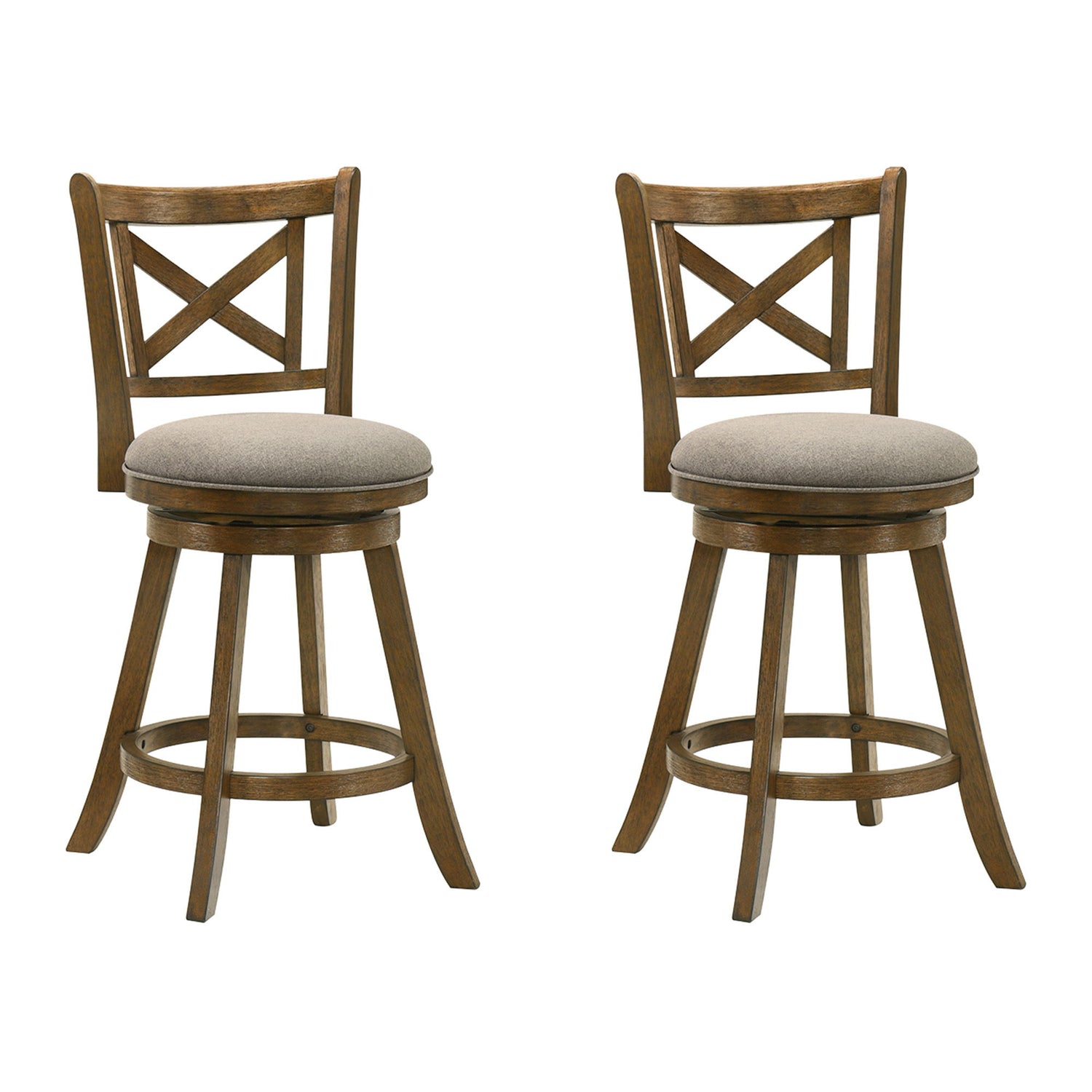 Kodi - Modern Farmhouse Swivel Wood Counter Height Kitchen Bar Stool (Set of 2) - Sepia Brown Finish With Gray Fabric Upholstered Seat
