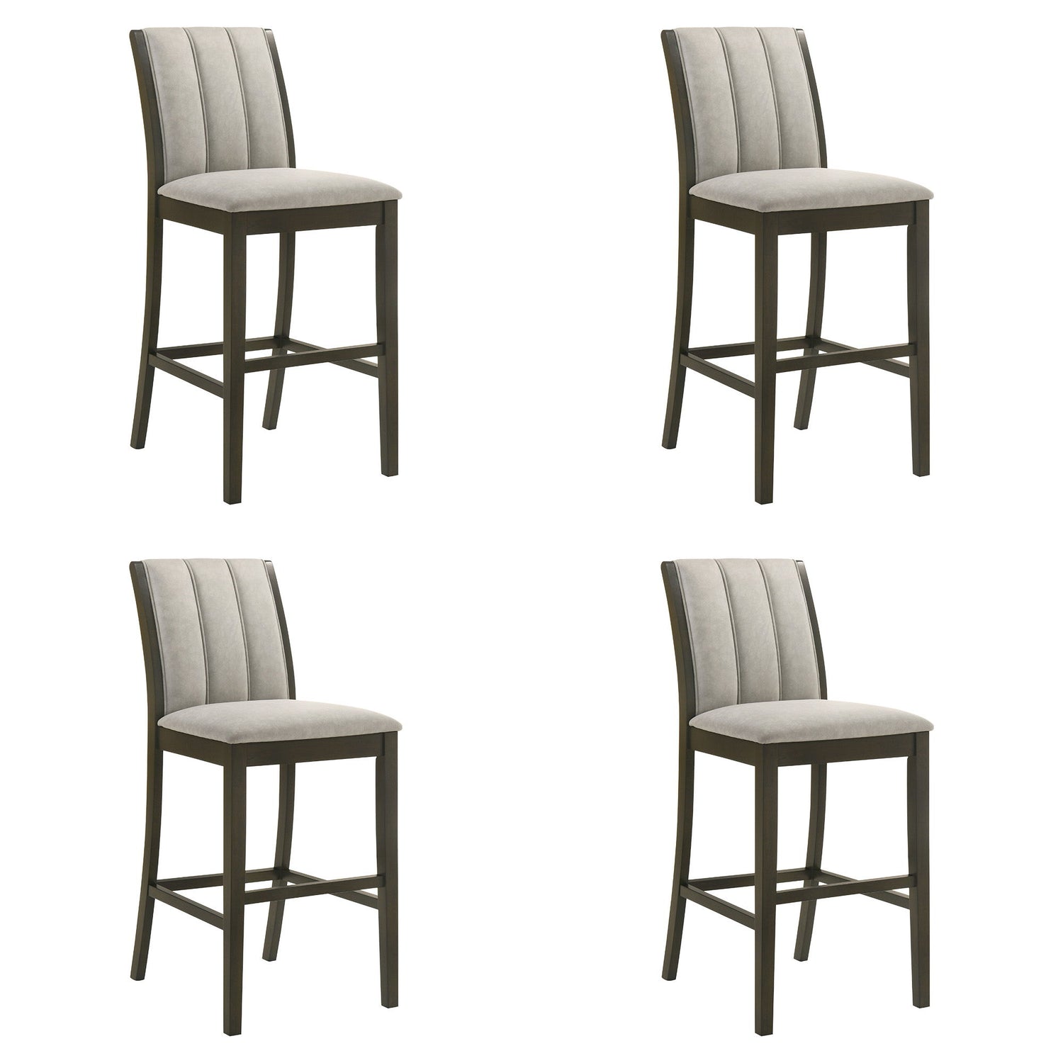 Nolan - 30" Dark Roast Bar Height Rubberwood Barstool (Set of 4) - Gray Fabric Seat