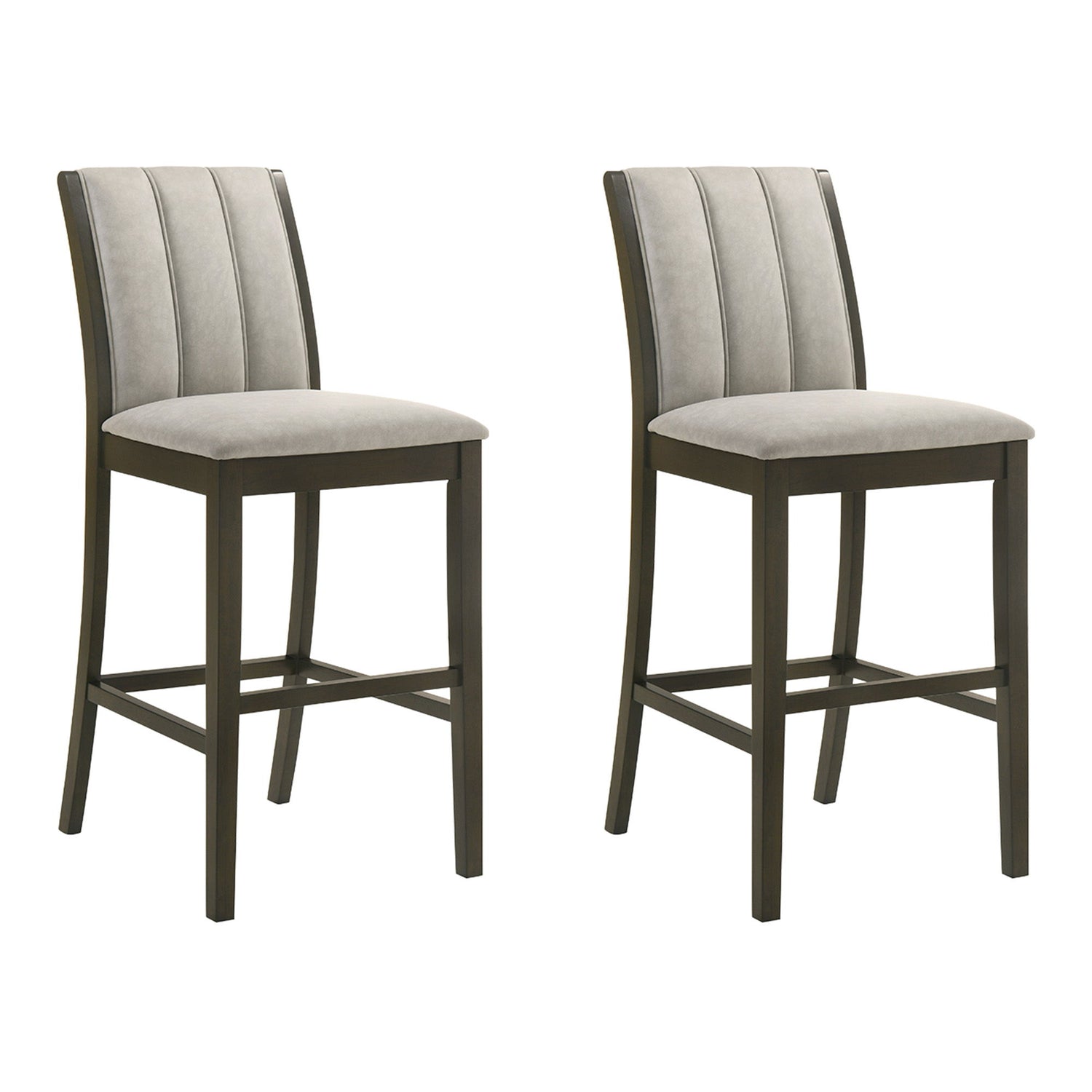 Nolan - 30" Dark Roast Bar Height Rubberwood Barstool (Set of 2) - Gray Fabric Seat