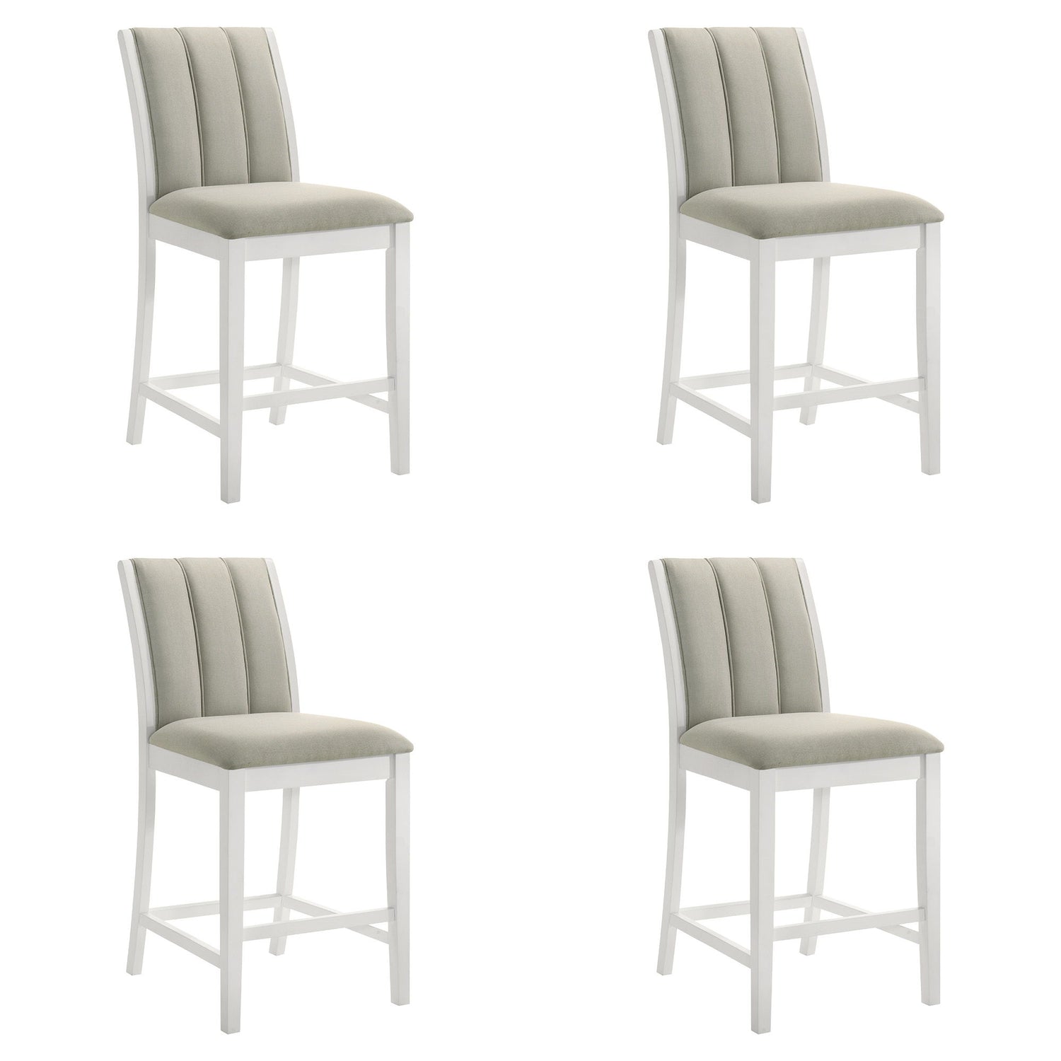 Nolan - 30" Matte White Bar Height Rubberwood Barstool (Set of 4) - Fog Fabric Seat Fabric Seat