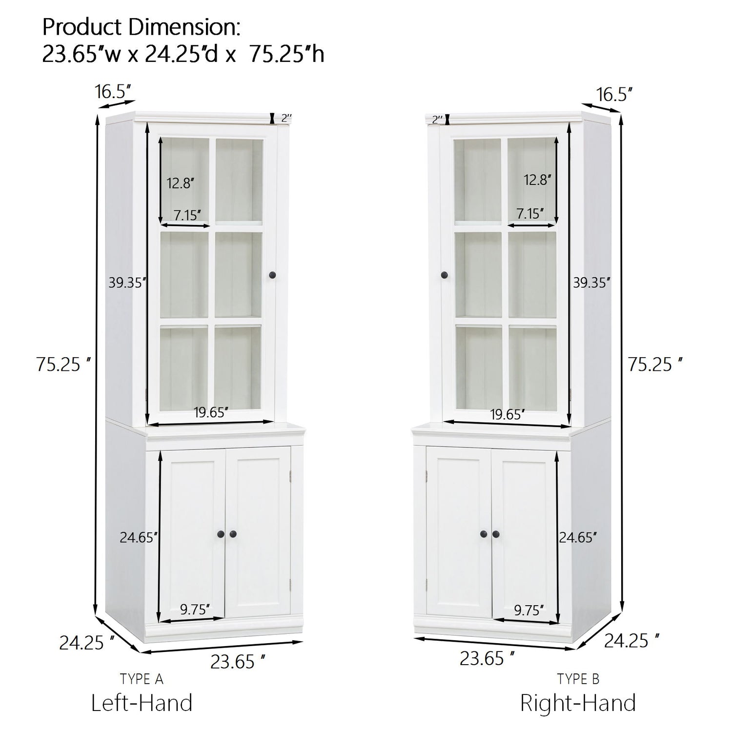 23.65"W x 24.25"D x 75.25"H - 103.18 lb
