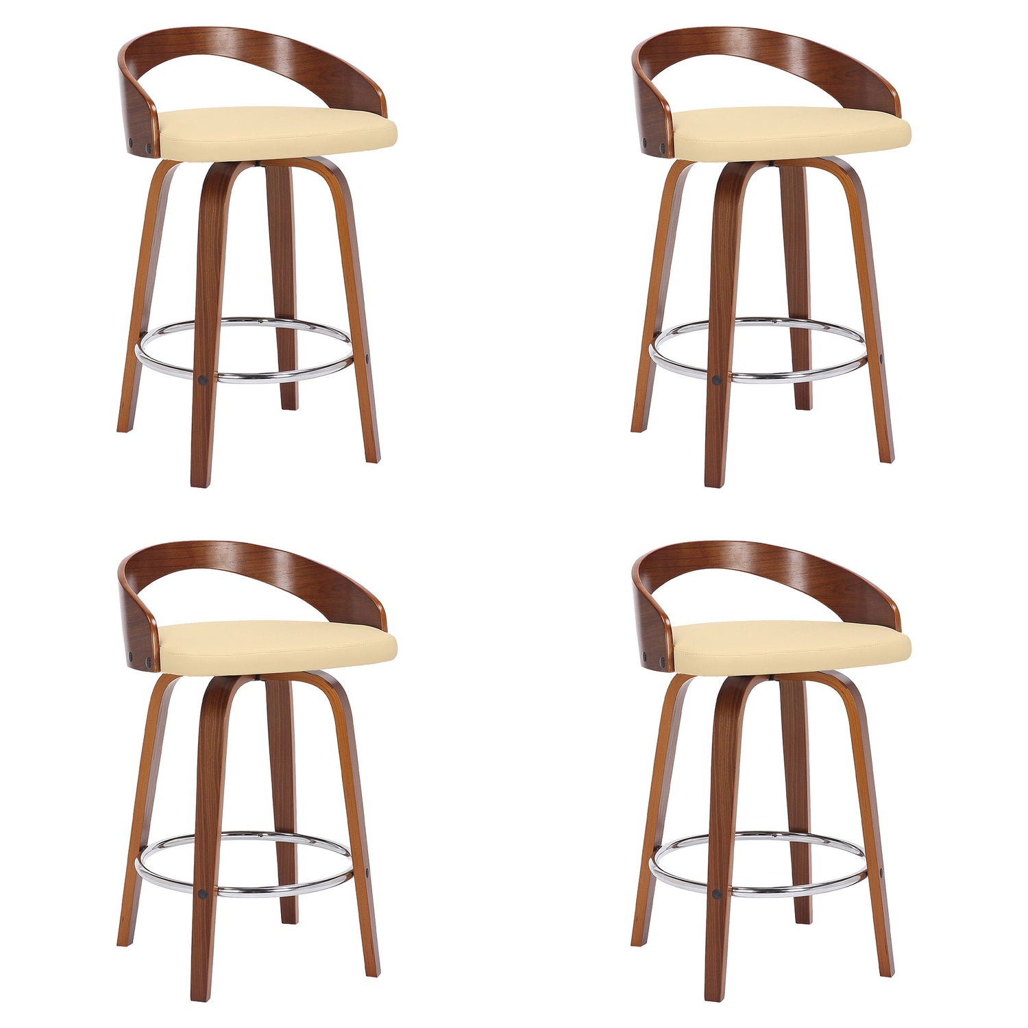 Sonia - 26" Counter Height Swivel Bar Stool (Set of 4) - Cream Faux Leather And Walnut Wood