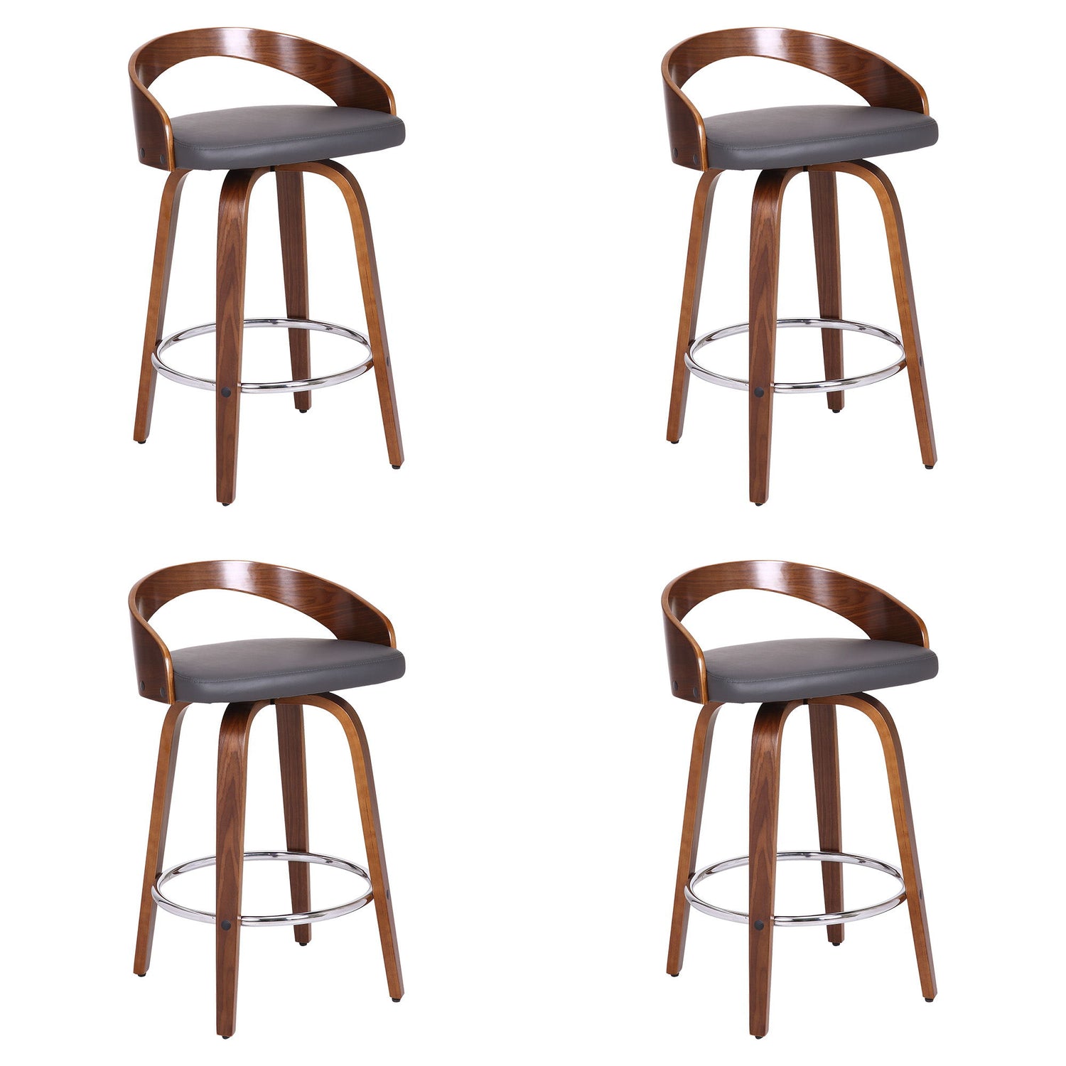 Sonia - 26" Counter Height Swivel Bar Stool (Set of 4) - Gray Faux Leather And Walnut Wood