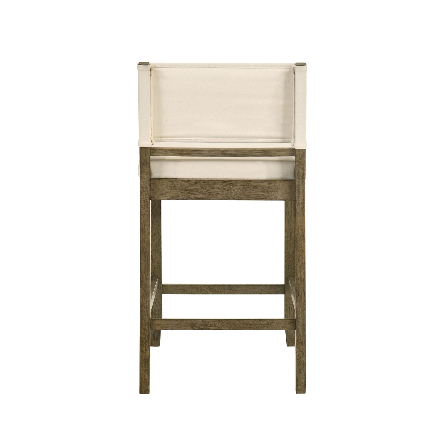 Yaneli - Contemporary Natural Wood Counter Height Kitchen Bar Stool - Putty Brown Finish With White Fabric Upholstered Seat