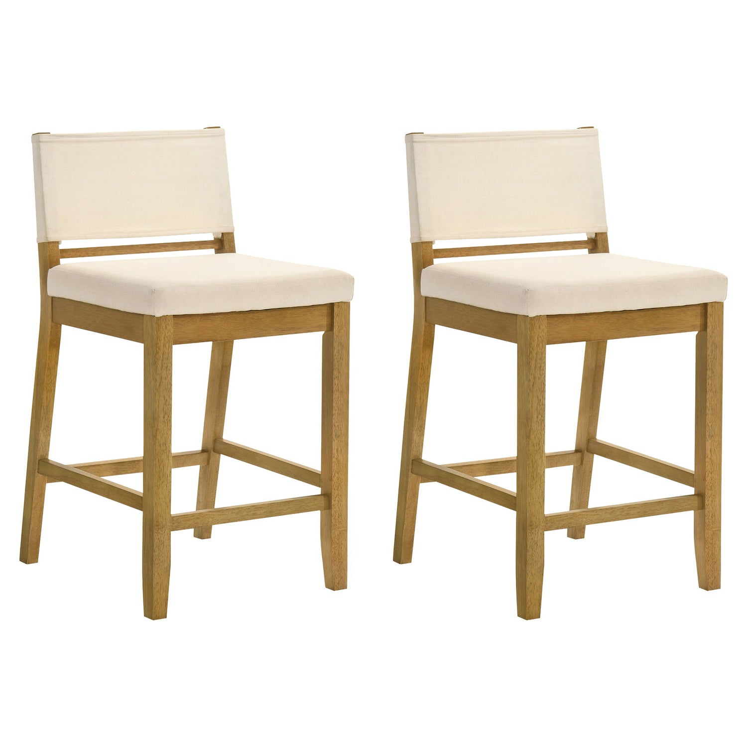 Yaneli - Contemporary Natural Wood Counter Height Kitchen Bar Stool (Set of 2) - Amber Glow Finish With White Fabric Upholstered Seat
