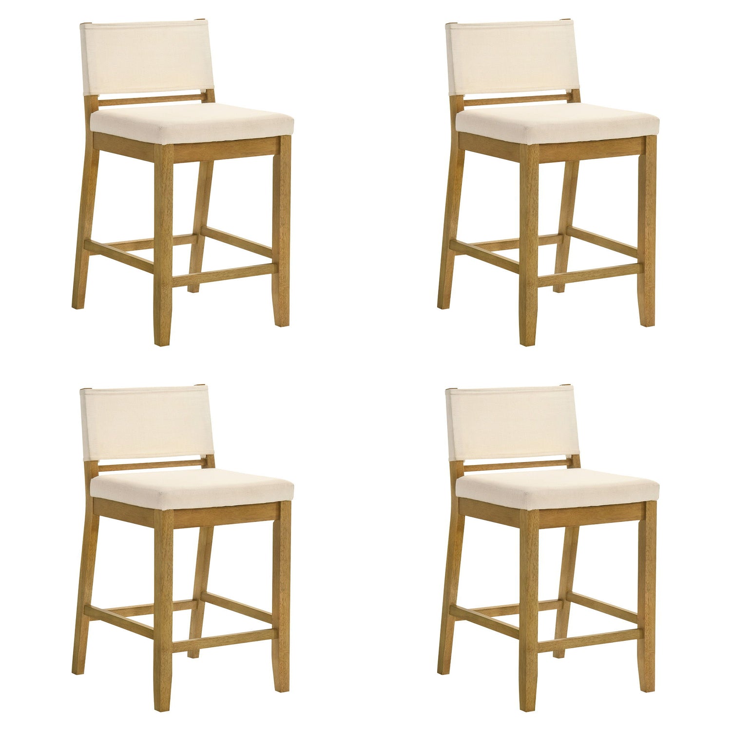 Yaneli - Contemporary Natural Wood Counter Height Kitchen Bar Stool (Set of 4) - Amber Glow Finish With White Fabric Upholstered Seat