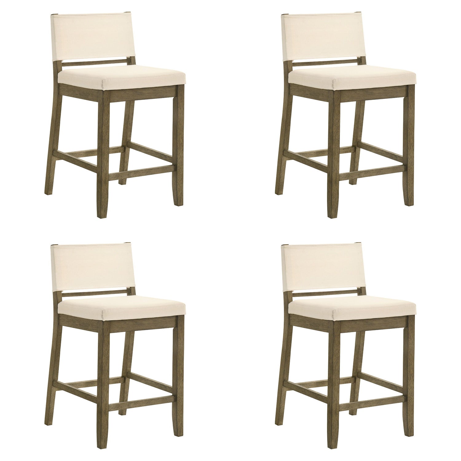 Yaneli - Contemporary Natural Wood Counter Height Kitchen Bar Stool (Set of 4) - Putty Brown Finish With White Fabric Upholstered Seat