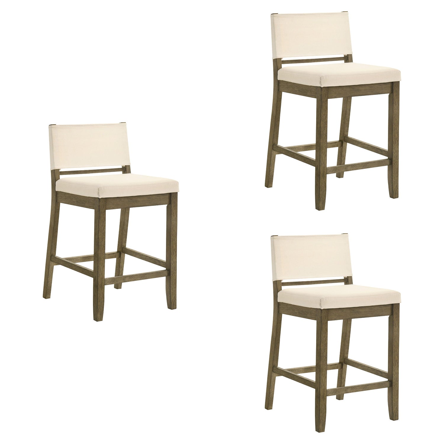 Yaneli - Contemporary Natural Wood Counter Height Kitchen Bar Stool (Set of 3) - Putty Brown Finish With White Fabric Upholstered Seat