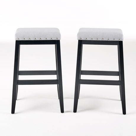 Greely Saddle Barstool Set With Fabric Upholstery - Light Gray