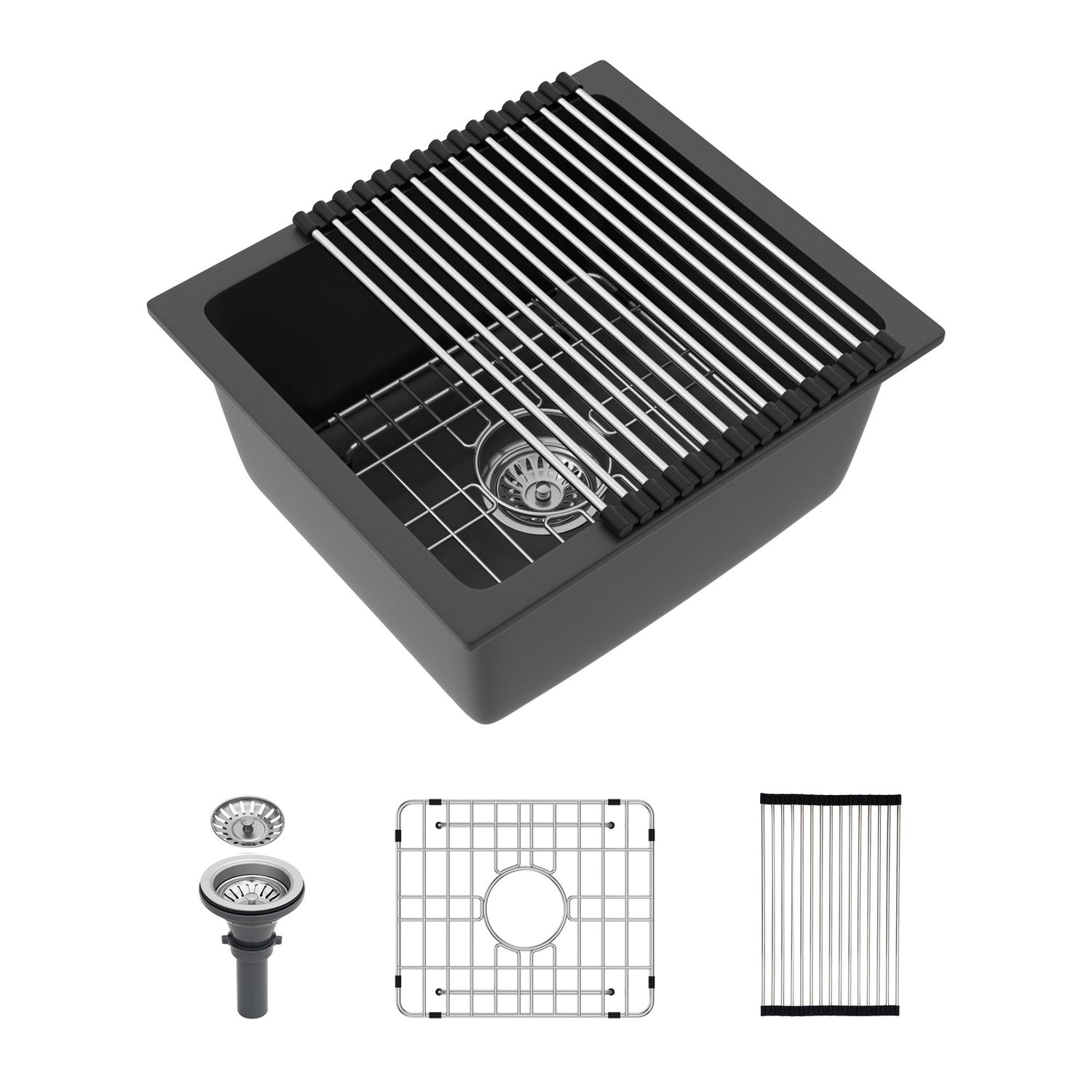 Kitchen Sink Undermount Granite Composite 17.71" X 15.74" - Black
