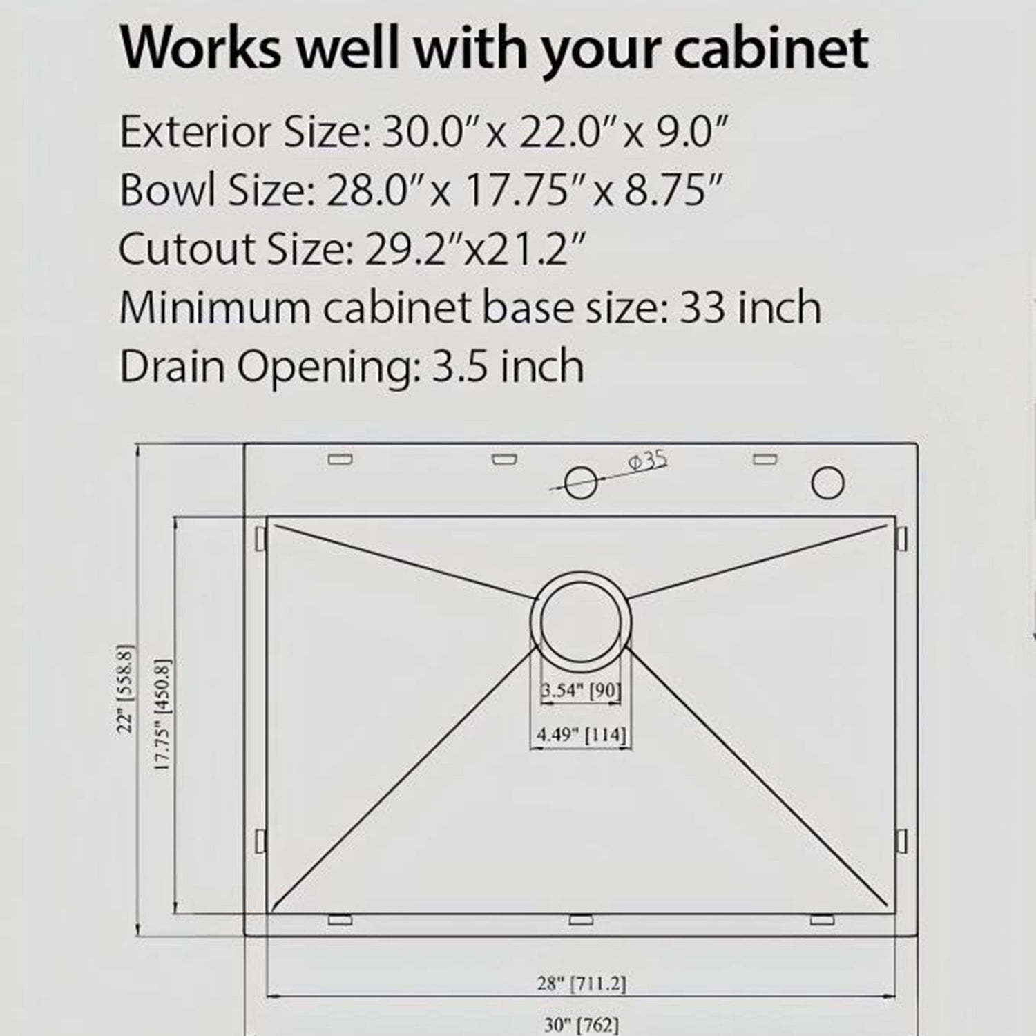 • Easy Installation: Includes cutout template, clips, drain assembly, and instructions for straightforward setup