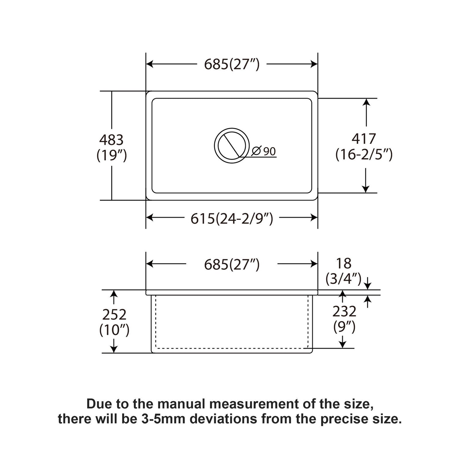 - Deep Rectangular Basin: 10-inch depth holds large cookware securely and minimizes splashing during use