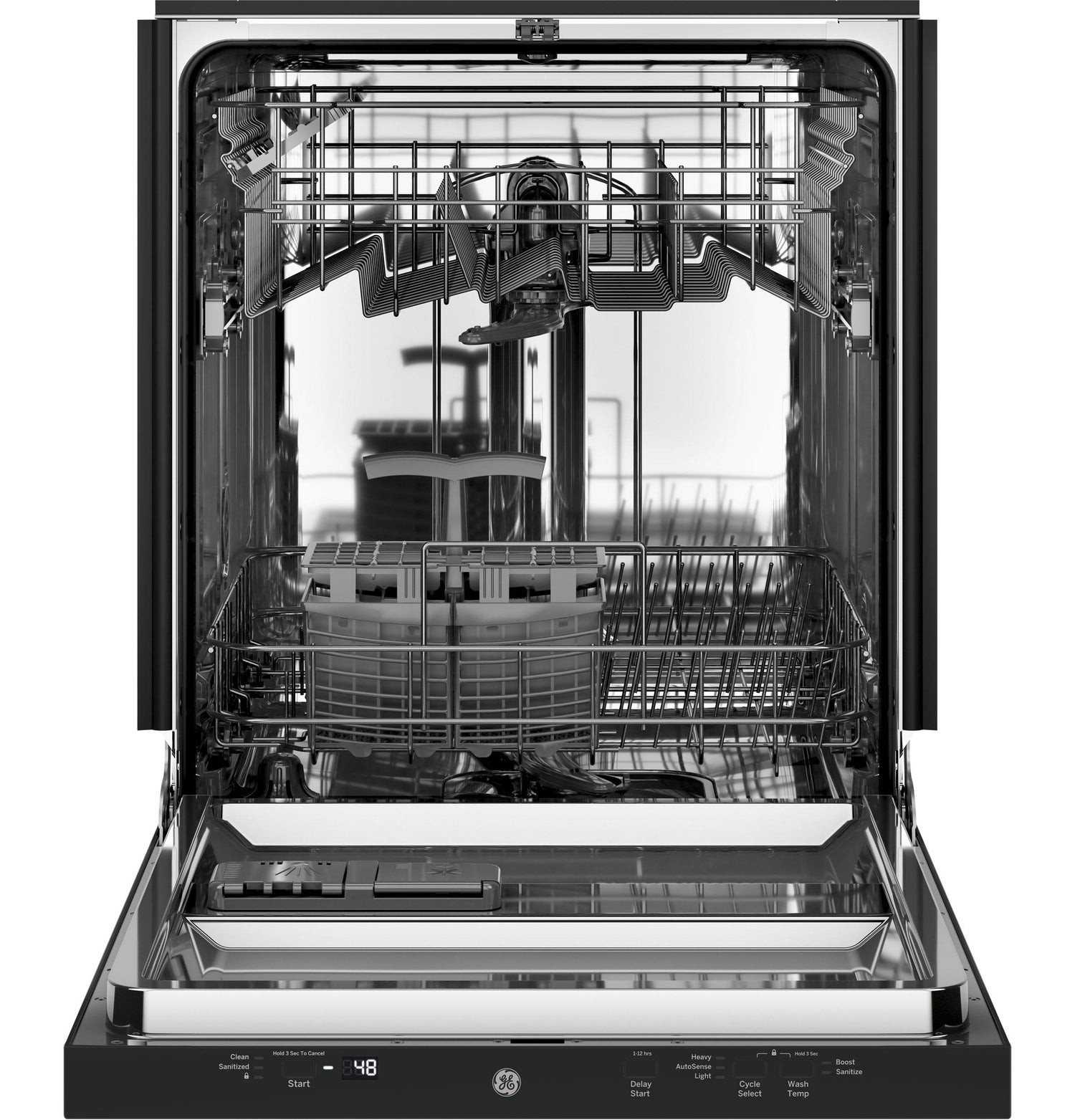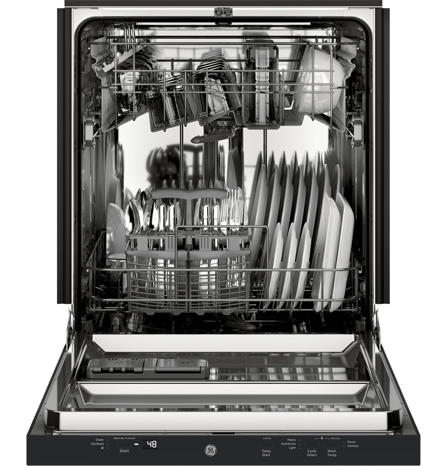 GE GDT226SGLBB - 24 in. Top Control Flush-Mount Dishwasher with 51 dBa Sound Level & Condensate Dry, Stainless Steel Interior Dishwasher with Sanitize Cycle - Black