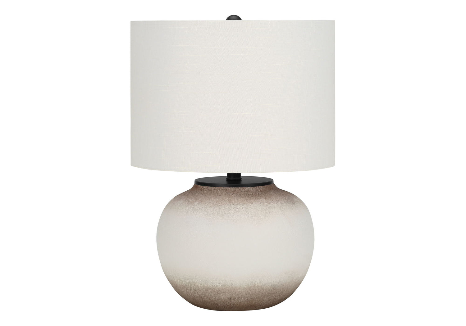 • Chic Design: This 21" high table lamp features a cream ceramic base with brown shading and an ivory fabric drum shade, offering a modern and stylish look.