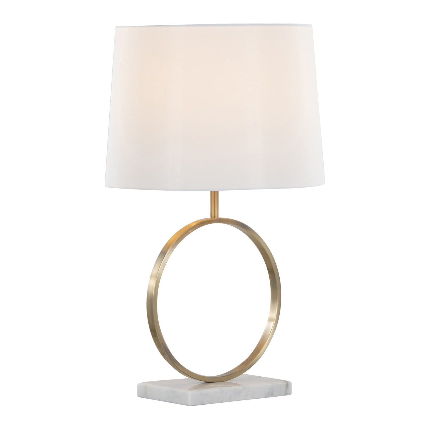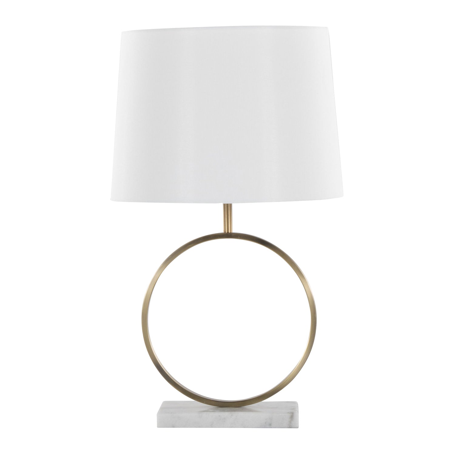 - Elegant Design: The Moon Table Lamp by LumiSource features a sophisticated design with a white marble base, circular gold metal frame, and a white linen empire shade, providing a modern and stylish accent to any desk or office area.