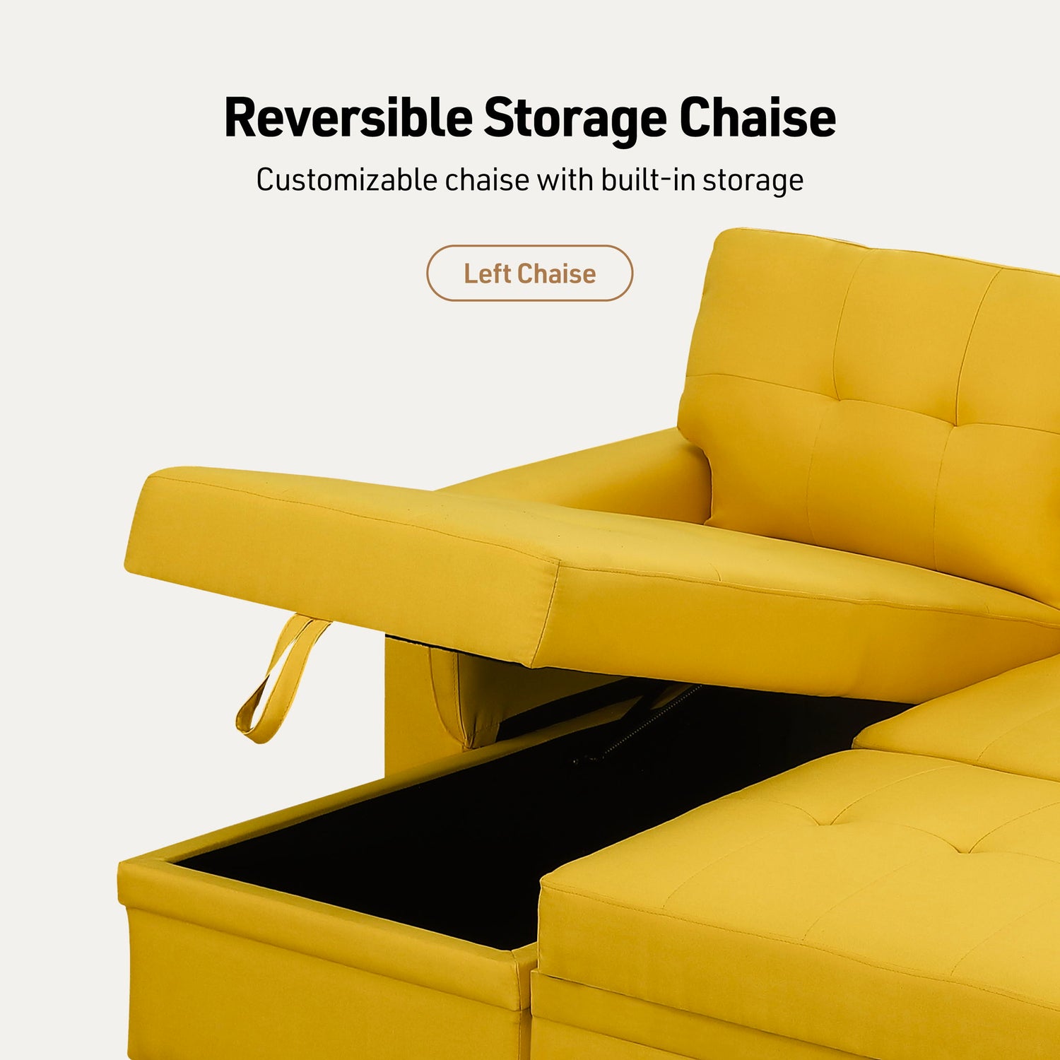 Lucca - Reversible Sleeper Sectional Sofa With Storage Chaise - Yellow