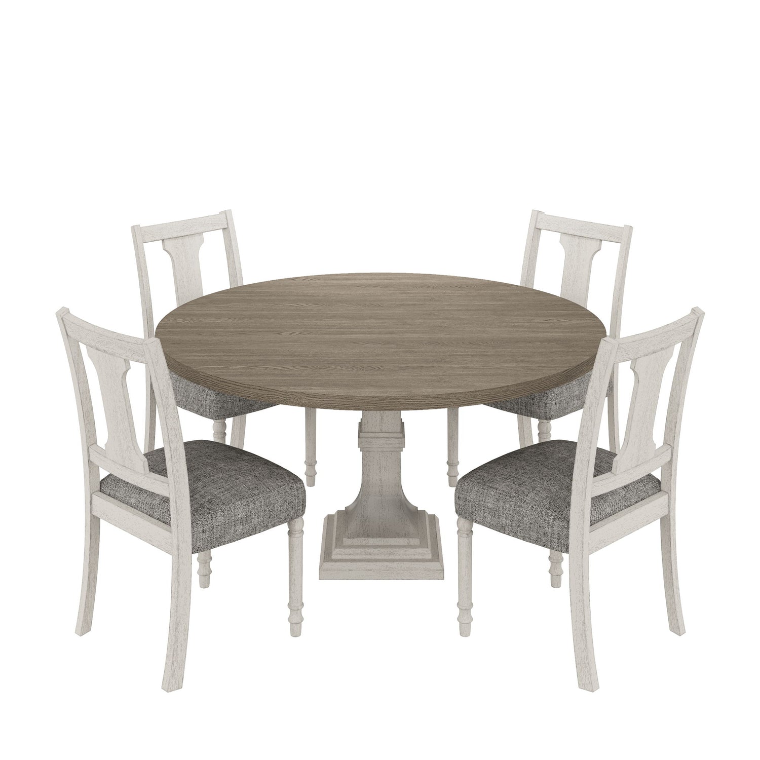 Tannen - Round 5 Piece Dining Table (Set of 5) - White And Gray
