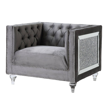 Decapree - Accent Chair - Antique Slate Top Grain Leather & Gray Velvet
