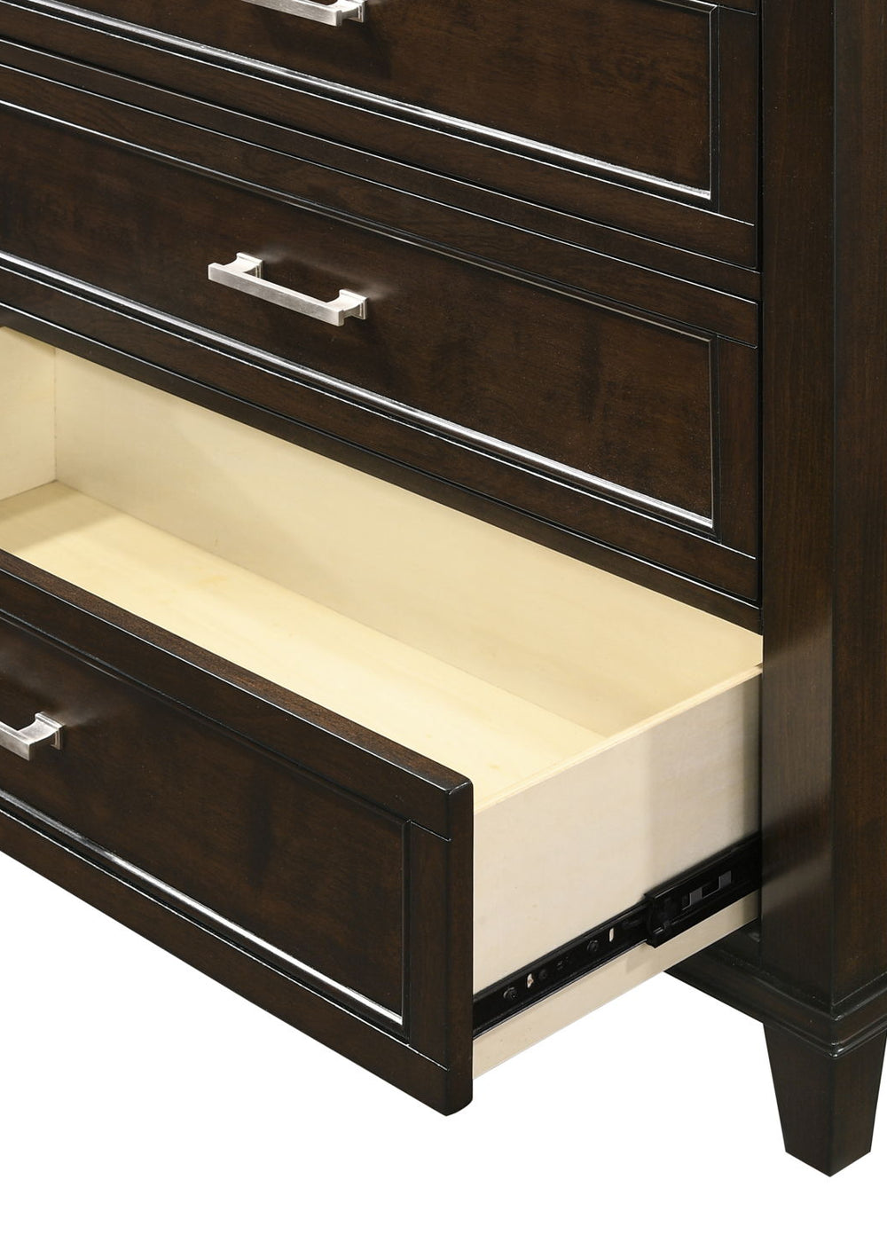 - Spacious Storage: The Merlot 5 Drawer Chest features five storage drawers, providing ample space for organizing clothes, linens, and other essentials, making it a practical addition to any bedroom.