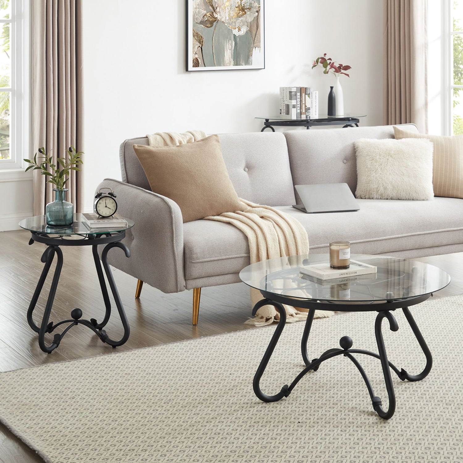 2 Piece Tempered Glass Surface Coffee Table Set, Decor Coffee Table Round End Side Table With Sturdy Construction For Living Room (Rustic) - Black is backordered and will ship as soon as it is back in stock.