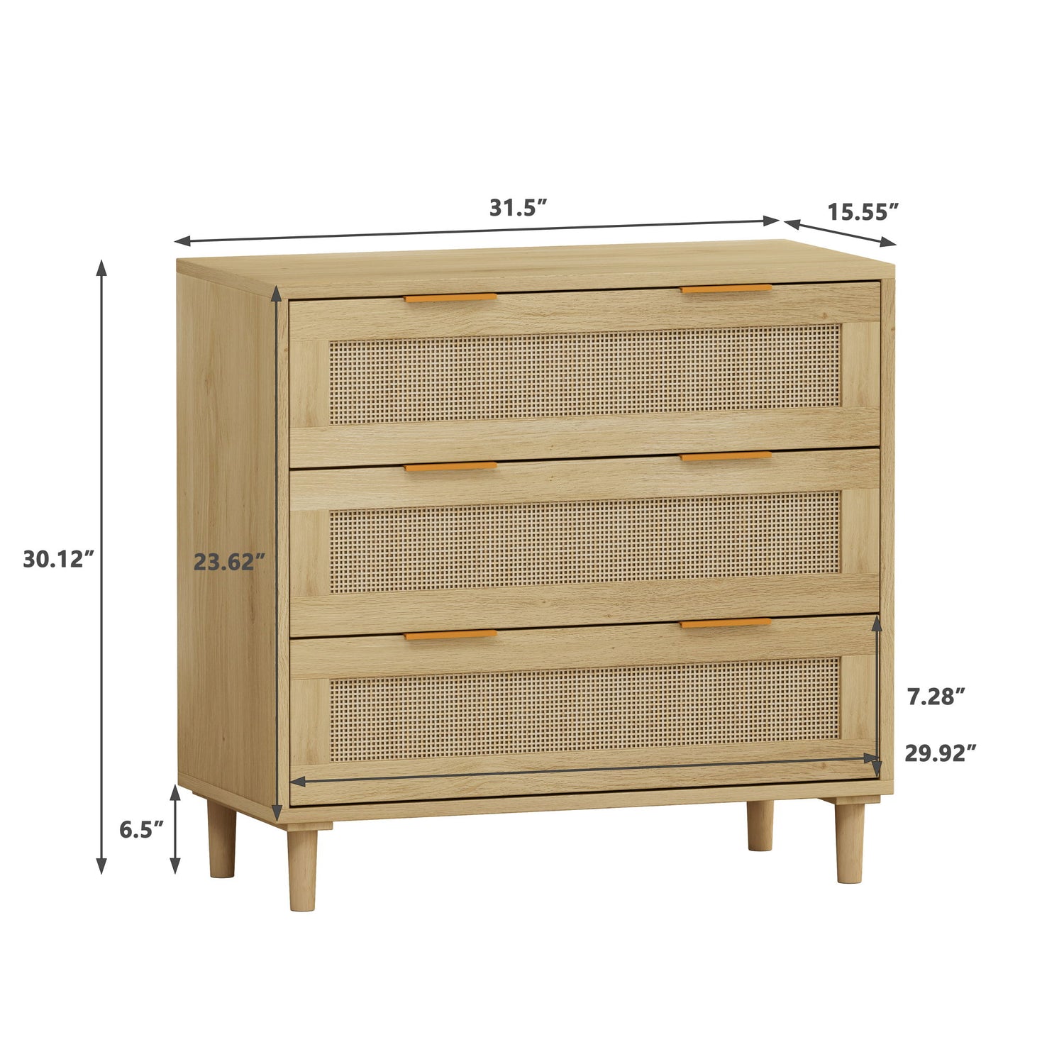 3 Drawers Rattan Storage Cabinet Rattan Drawer, For Bedroom, Living Room, Dining Room, Hallways (Set of 2) - Oak is backordered and will ship as soon as it is back in stock.