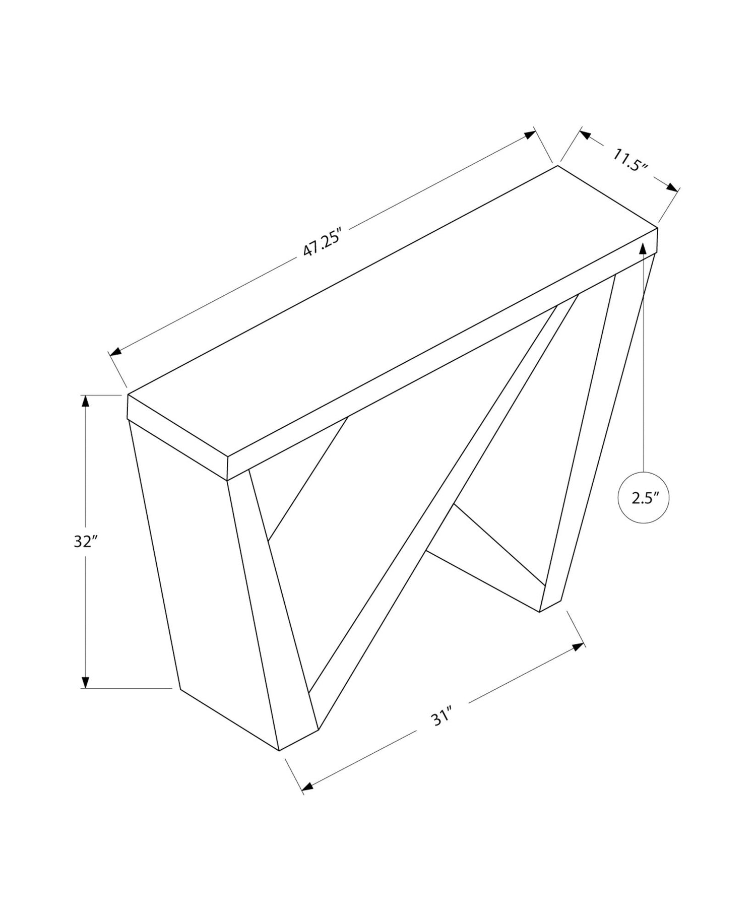 - Stylish Design: This console table features a finish and an asymmetrical design with intersecting panels, creating visually appealing open spaces. It adds a modern and contemporary touch to any room.