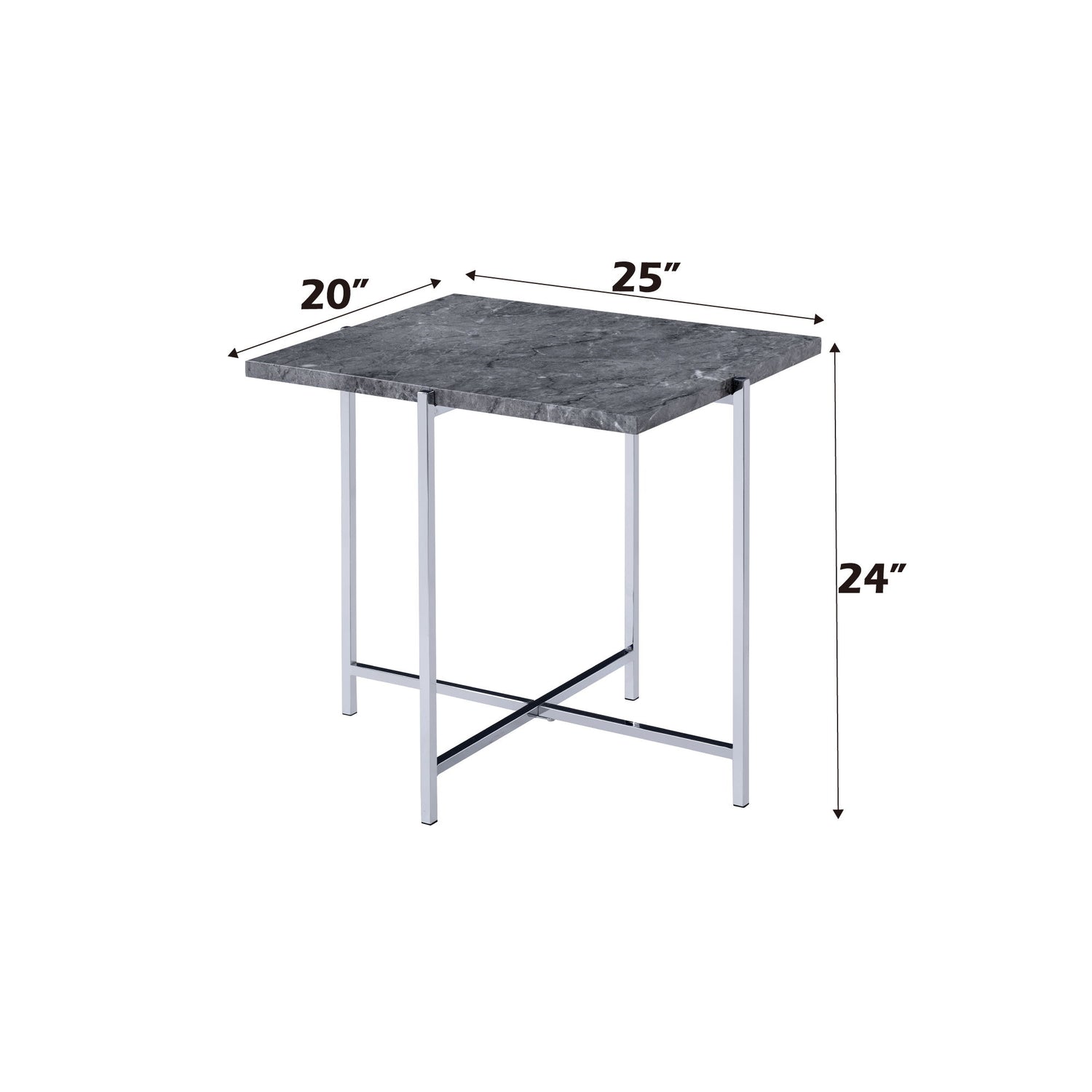 - Modern Design: The Adelae End Table features a sleek faux marble top combined with a chrome-finished metal "X" base, making it an ideal addition to contemporary interiors.