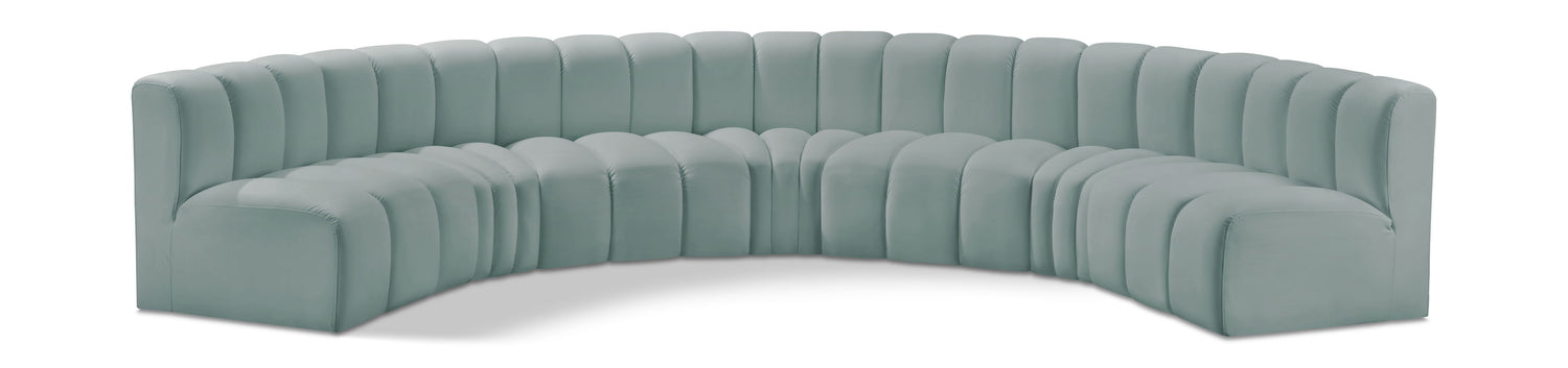 Arc - Faux Leather 7 Piece U-Shaped Modular Sofa - Mint Green